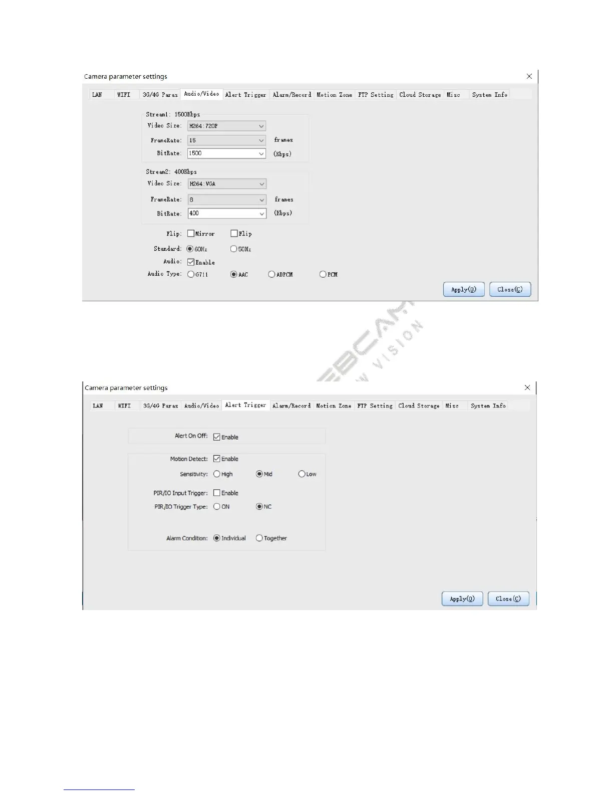 Above figure is to set the alarm trigger conditions. It can be achieved through motion detection or PIR or IO trigger.