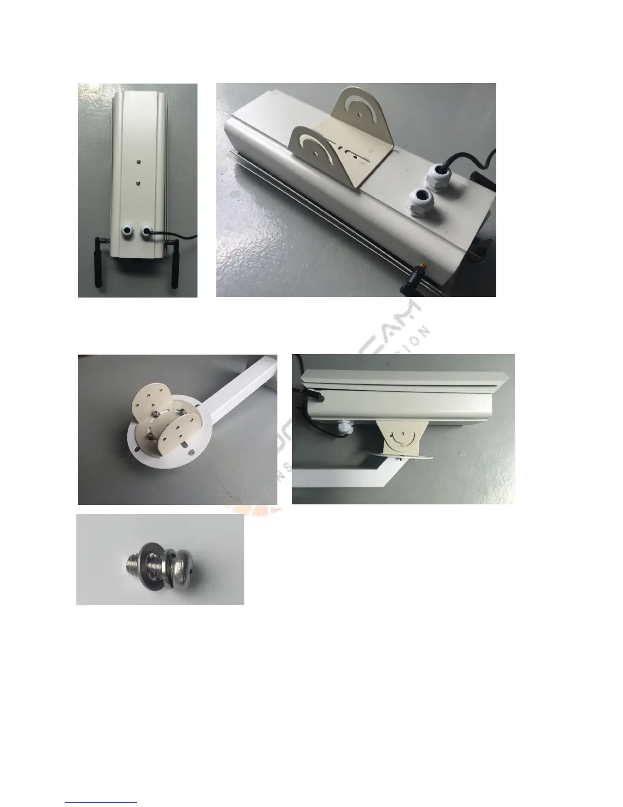 Align the arc slot of Camera with 4 holes of Bracket. You can adjust the angle before screw. Put Spring Washer and