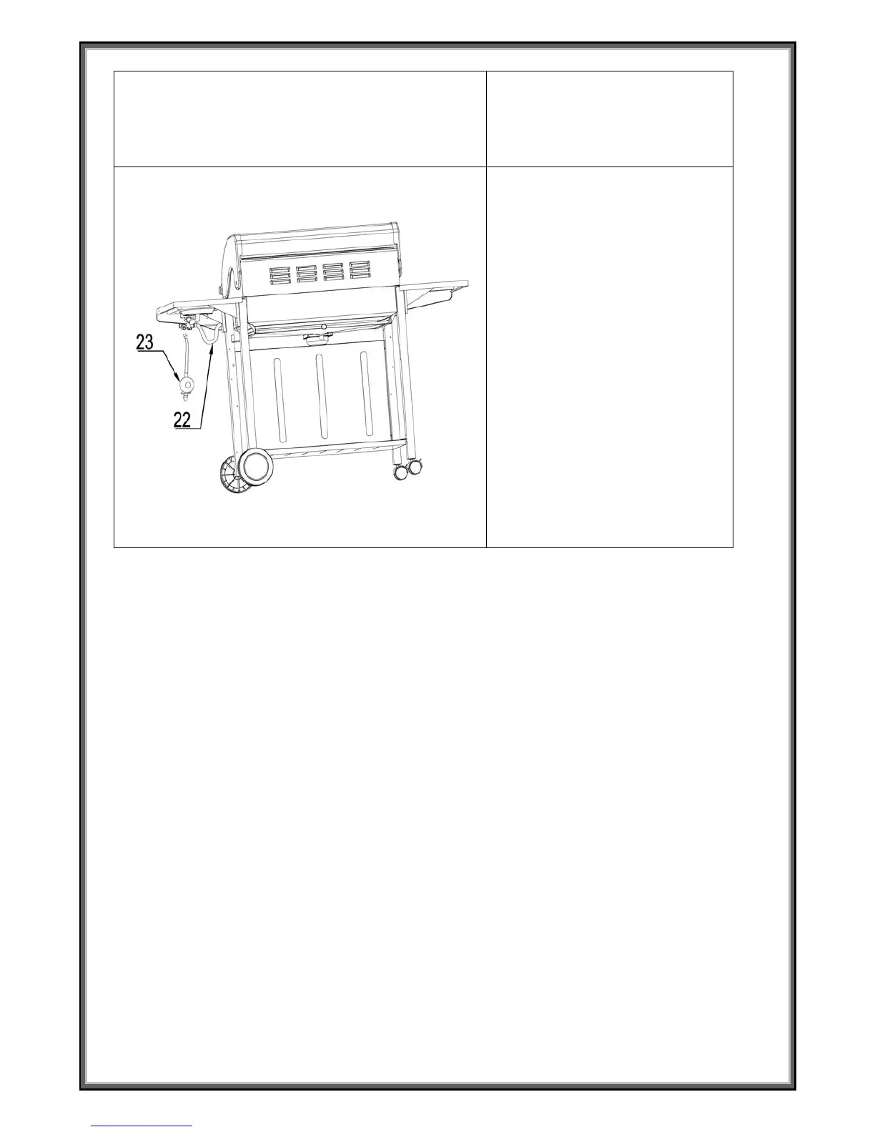 Fest slange for sidebrenner (22) og regulatorsett (23).