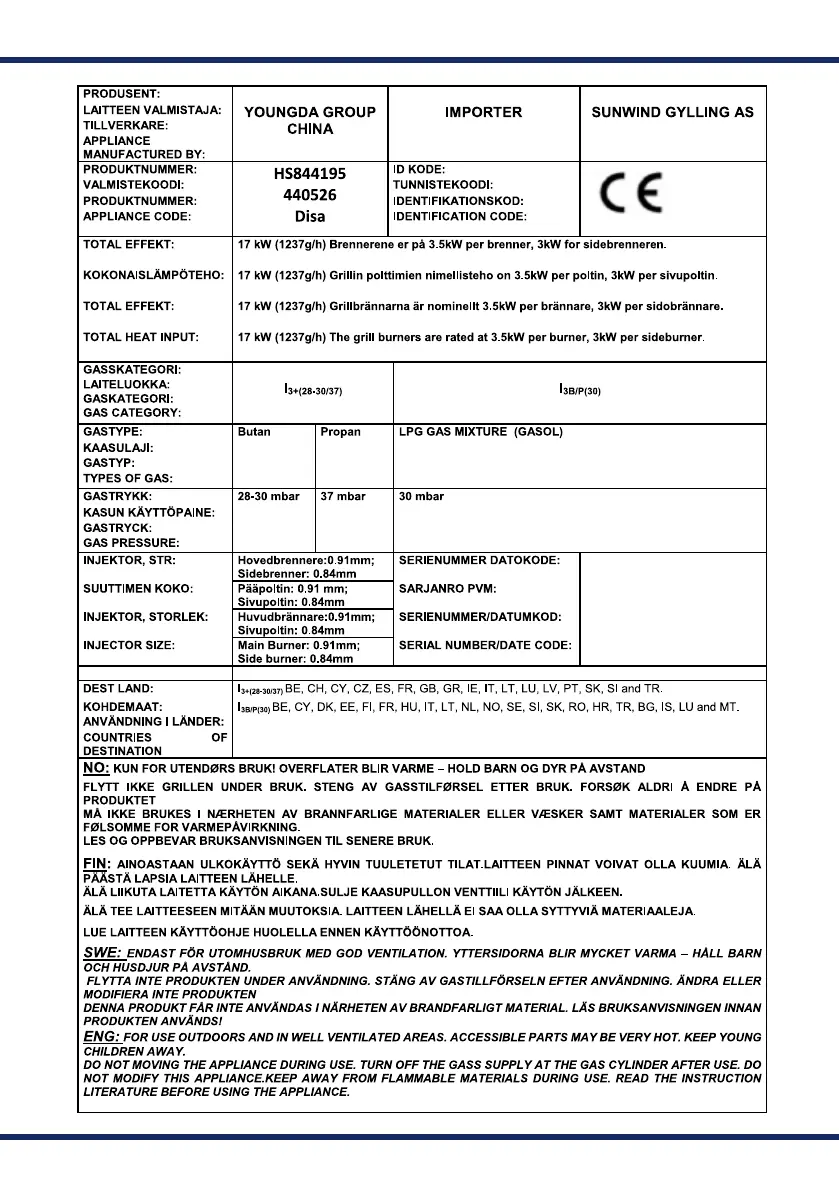 SUNWIND DISA 440526 - Important Safety Guidelines and Warnings; Outdoor and Ventilated Area Use; Safe Operation Practices; Proximity to Flammables