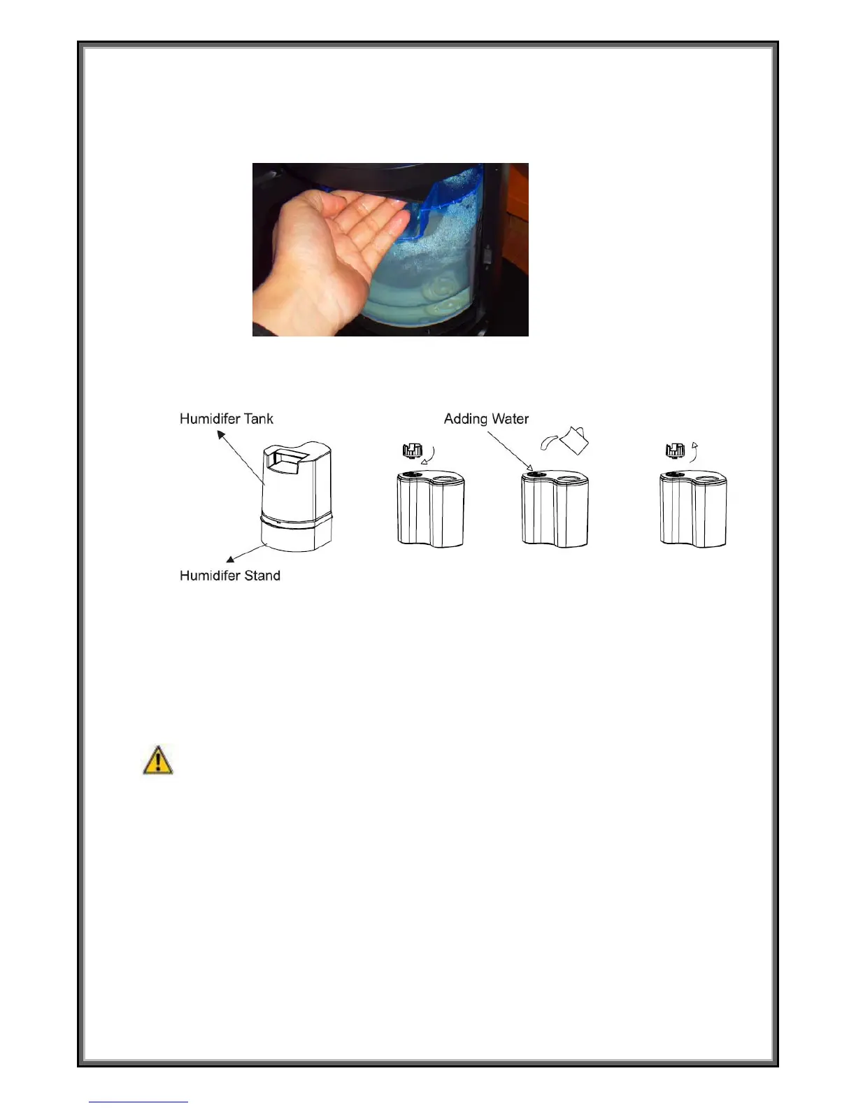 put the water tank onto the humidifier’s base flatly and close