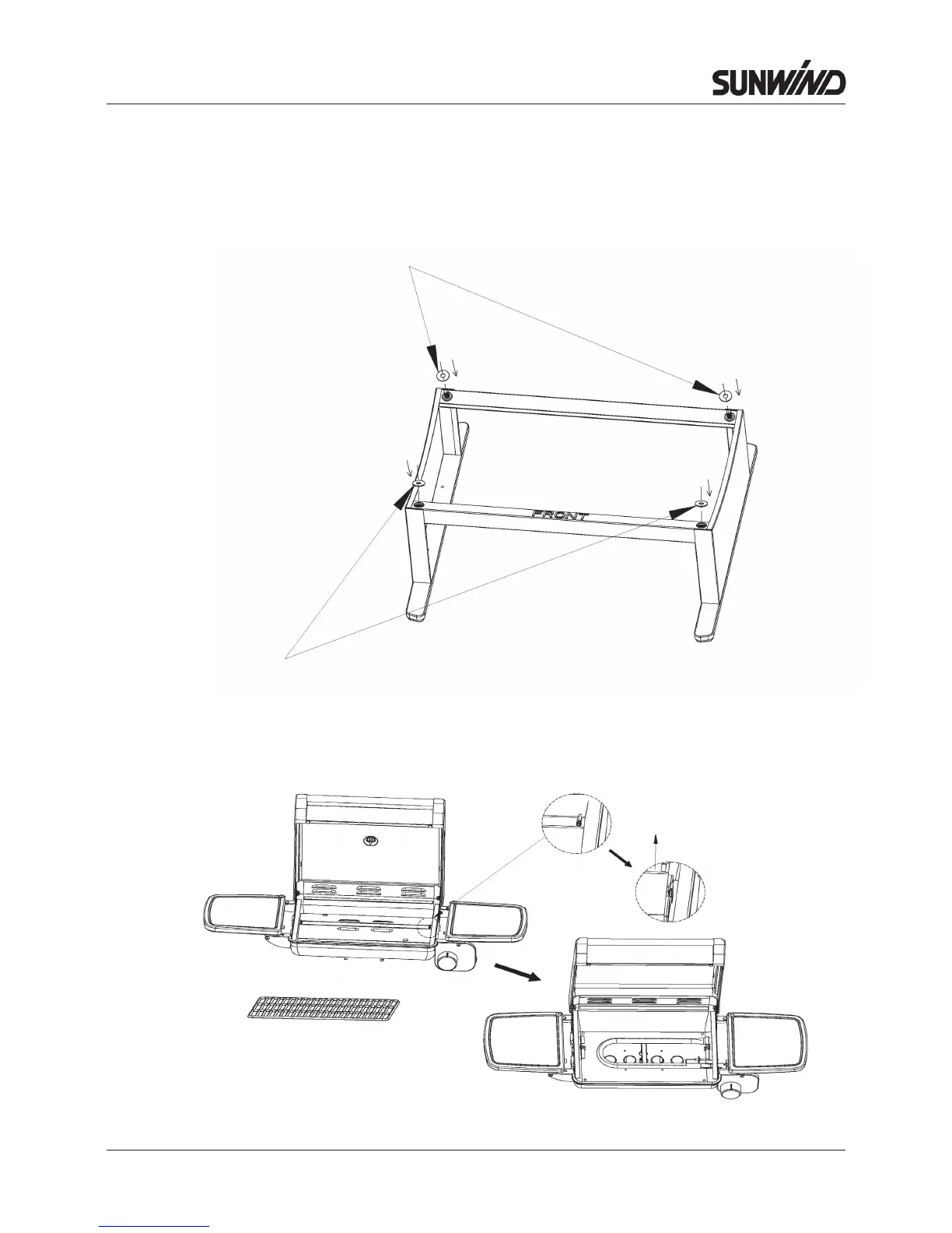Sättbrickornapågrillensunderdel.Detskallvaraenbrickatillvarjeskruv.Sättbrickornamed