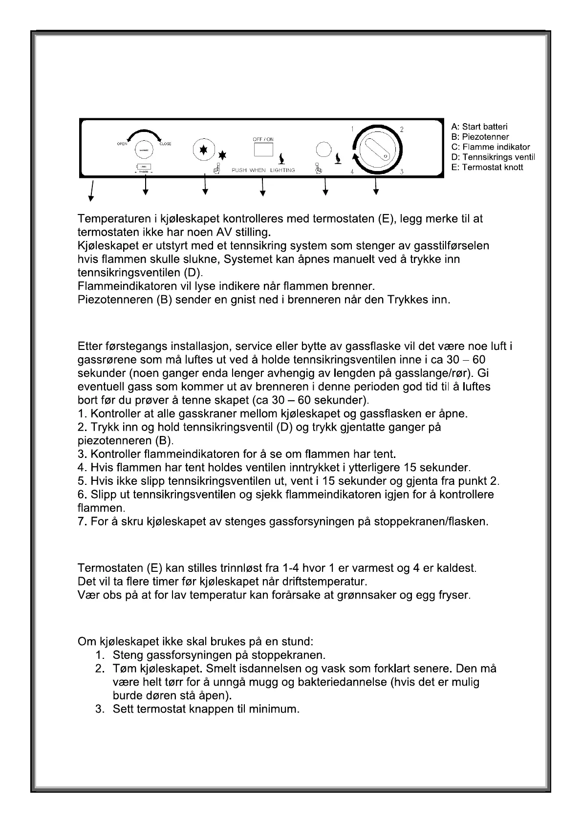 SUNWIND XCD-180 - Driftsinstruksjoner; Tenning; Temperaturregulering