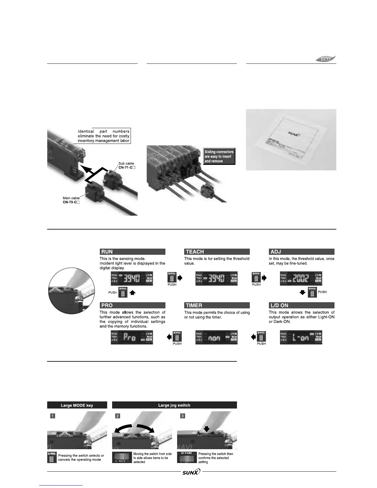 Only two switches, the large jog switch and the large MODE key, are required for