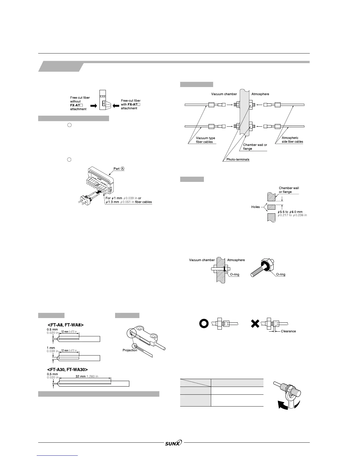 Notes: 1) The fixings rings of the vacuum type fibers must be tightened