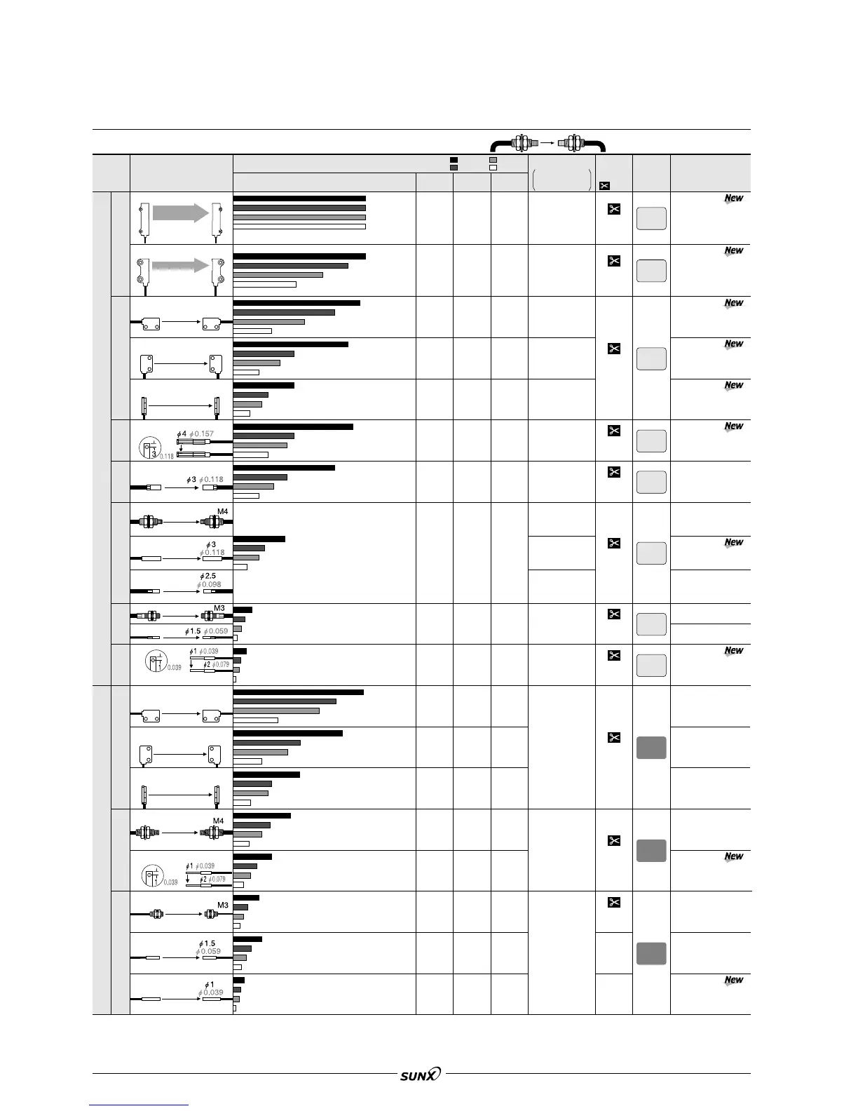 Notes: 3) The fiber cable length practically limits the sensing range to 3,500 mm 137.795 in long.