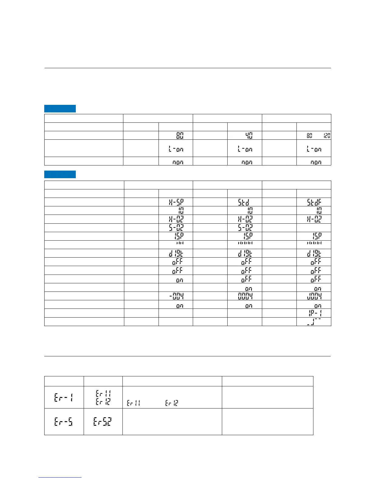 Factory settings for the FX-301(P)(-HS)/305(P) are indicated below: