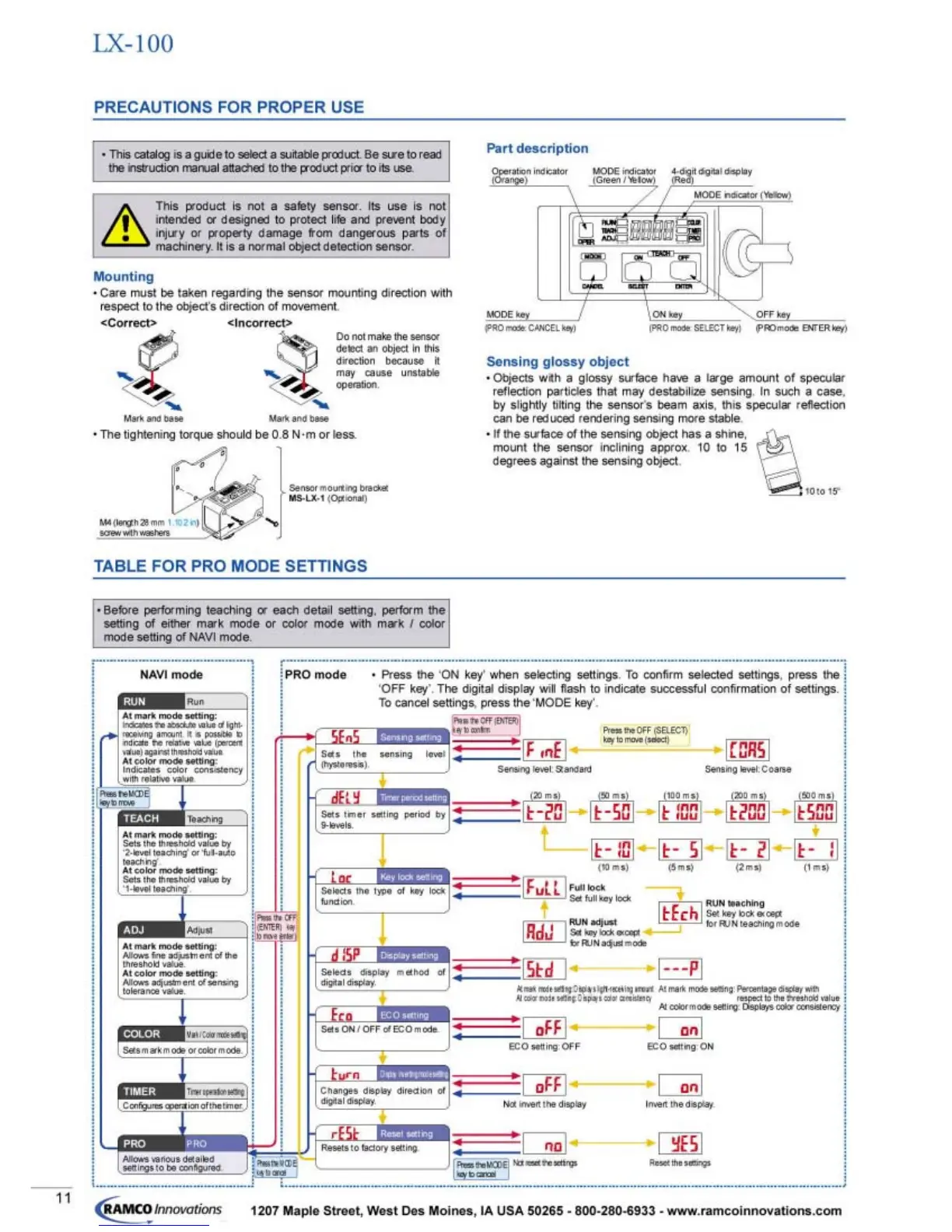 Sunx LX-101 - LX-100 Installation Precautions; Mounting Precautions; Sensing Glossy Objects