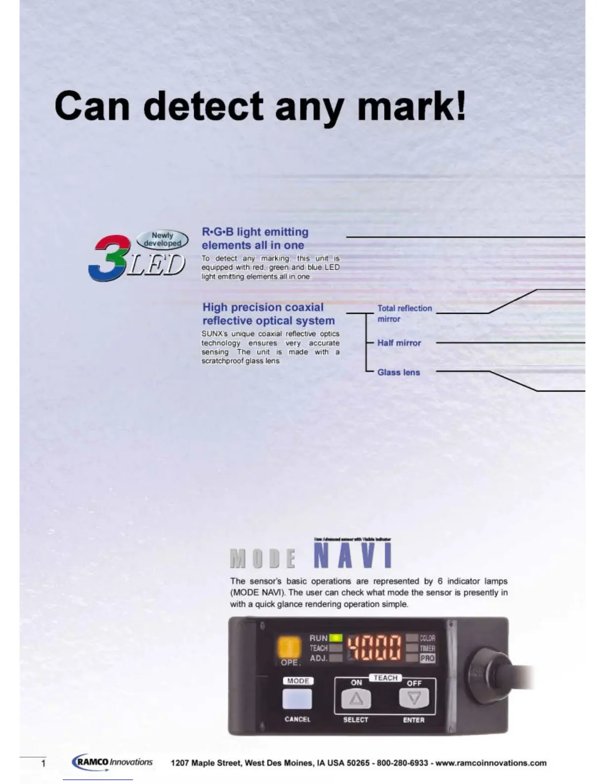 Sunx LX-101 - LX-100 Sensor Design; RGB Light Emitting Elements; High Precision Coaxial Optics