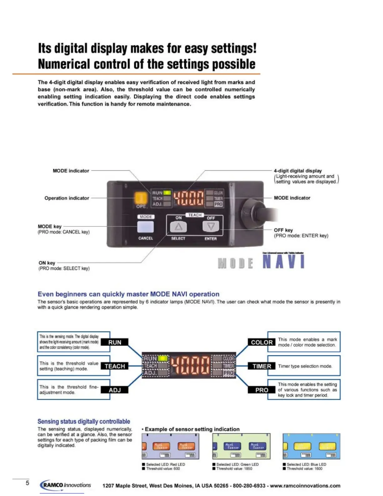 Sunx LX-101 - LX-100 User Interface; Digital Display and Controls