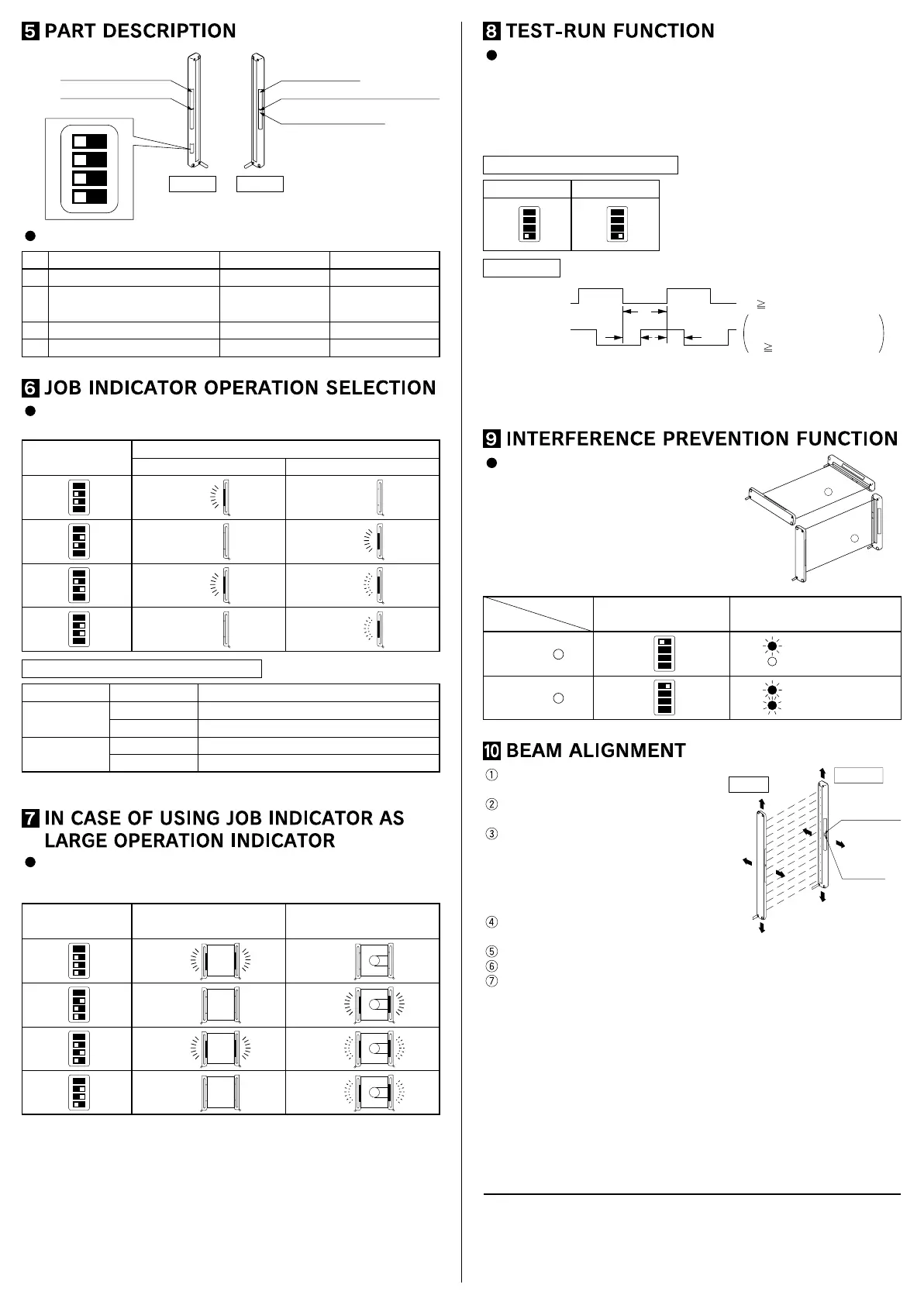When the test-run function is set, the job indicator (red) does not light up or blink.
