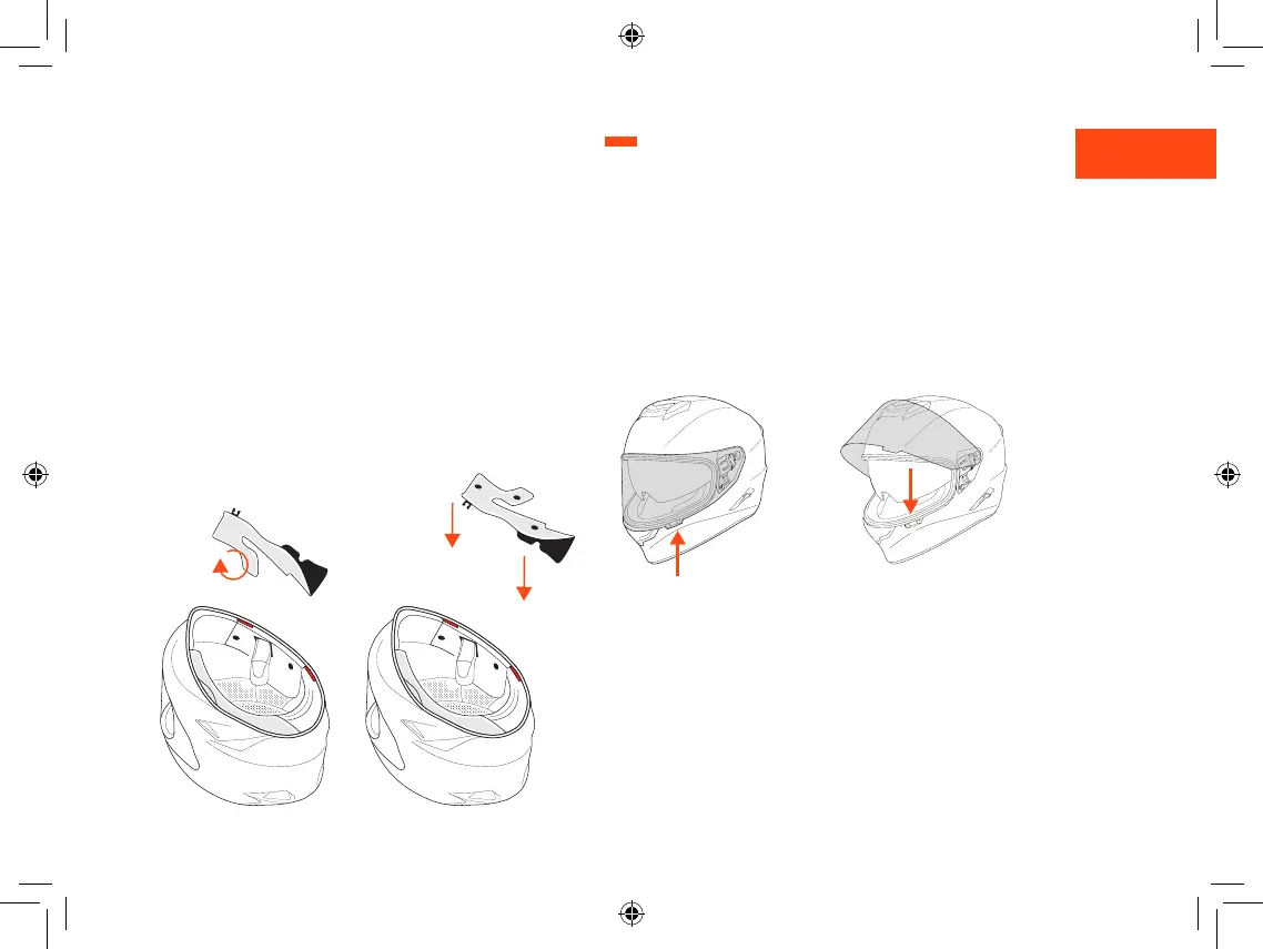 Ouverture de la visière: pousser légèrement l’ergot de levage vers