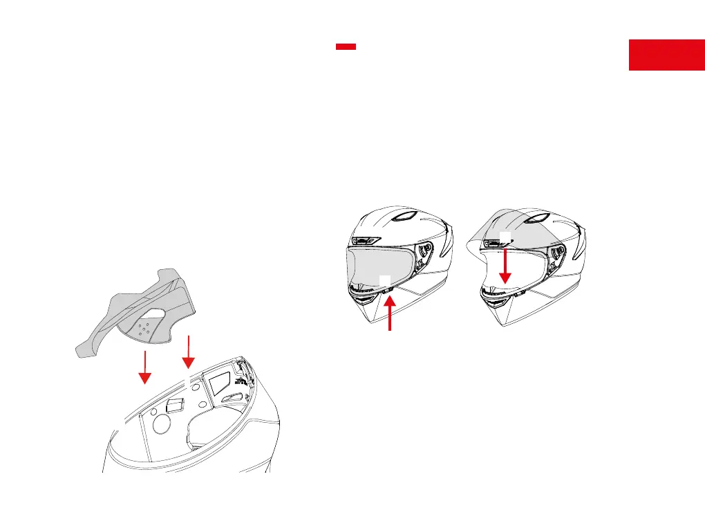 Apertura visiera: spingere la visiera leggermente verso l’esterno