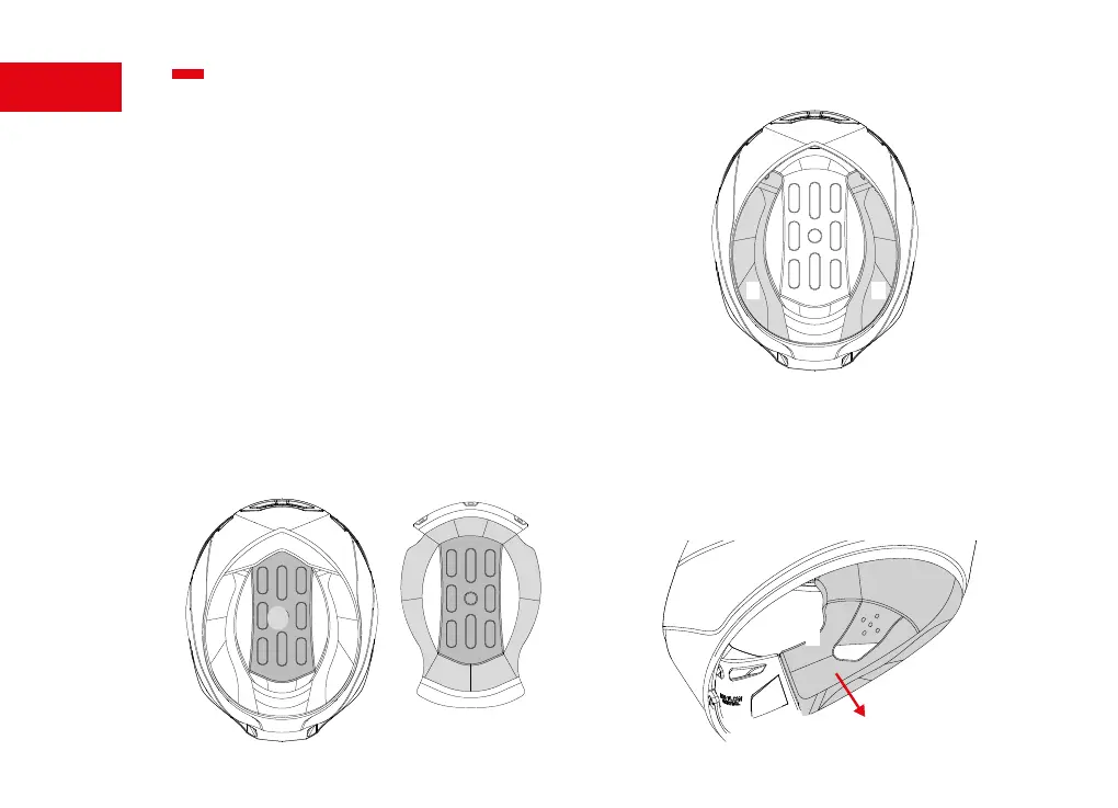 Positionner la calotte (E) à l’intérieur du casque en contrôlant le