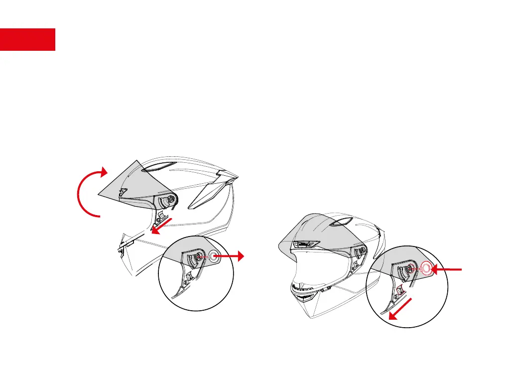 Positionner la visière comme si elle était complètement ouverte.