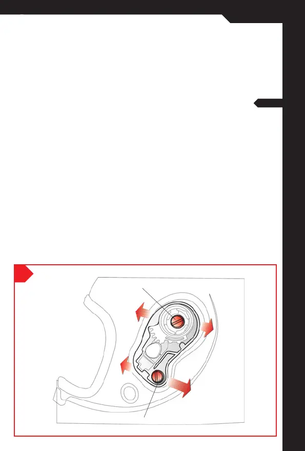 drücken, sodass die auf der Helmschale montierte Gummidichtung an der gesamten Länge des Visiers anliegt.