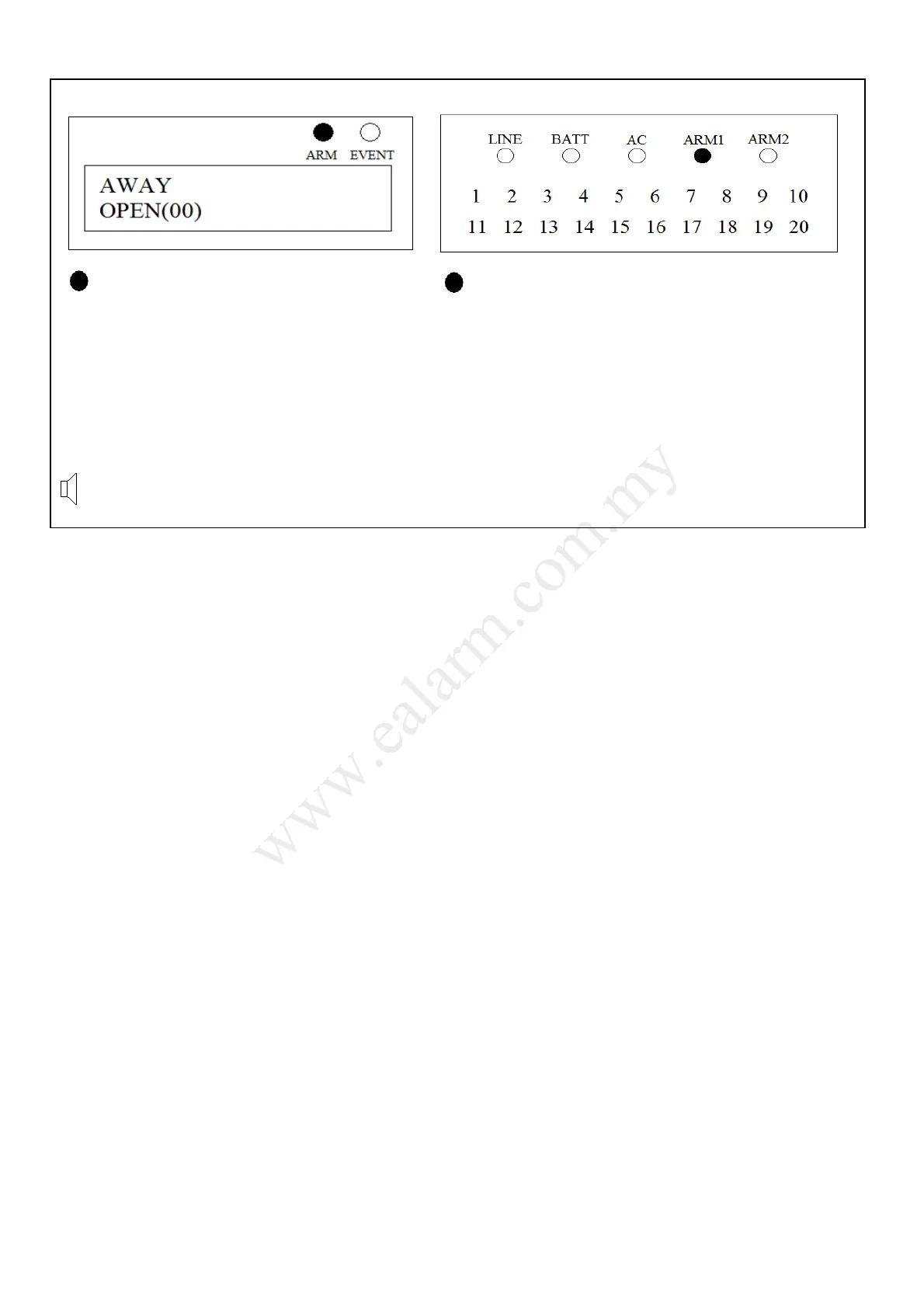 If anyone of User-6 to User-10 arms in Away mode, the system will dial the first programmed telephone