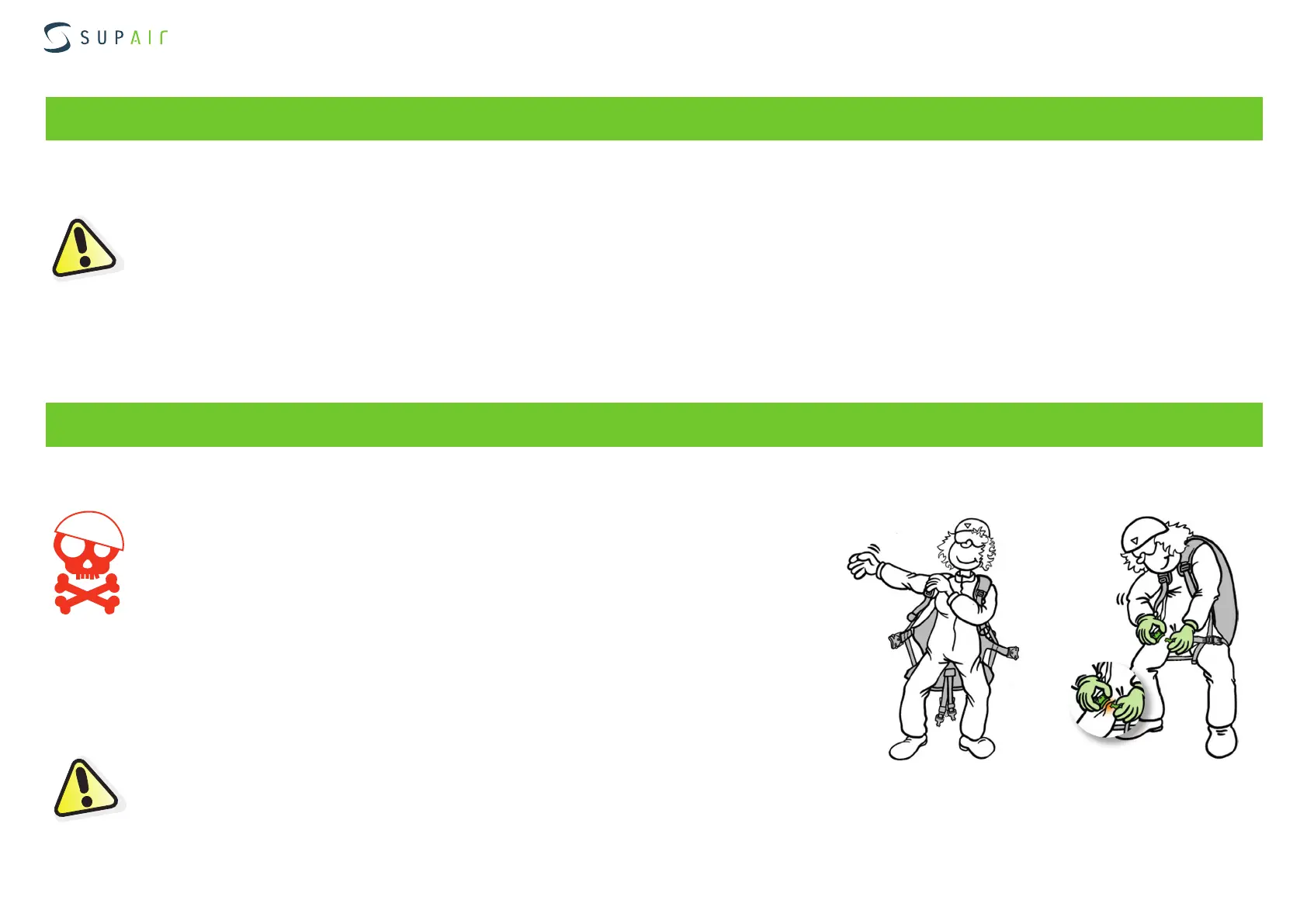 • Check that the harness and the carabiners are not damaged..