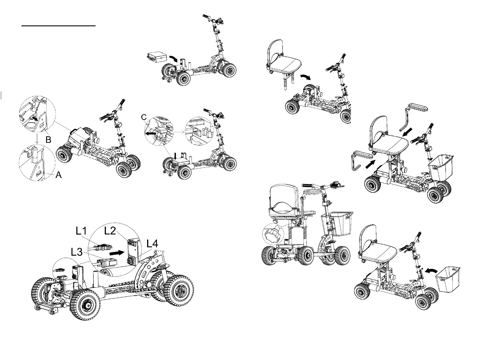 ● Plug in the battery connector “L1” into “L2” on the frame.