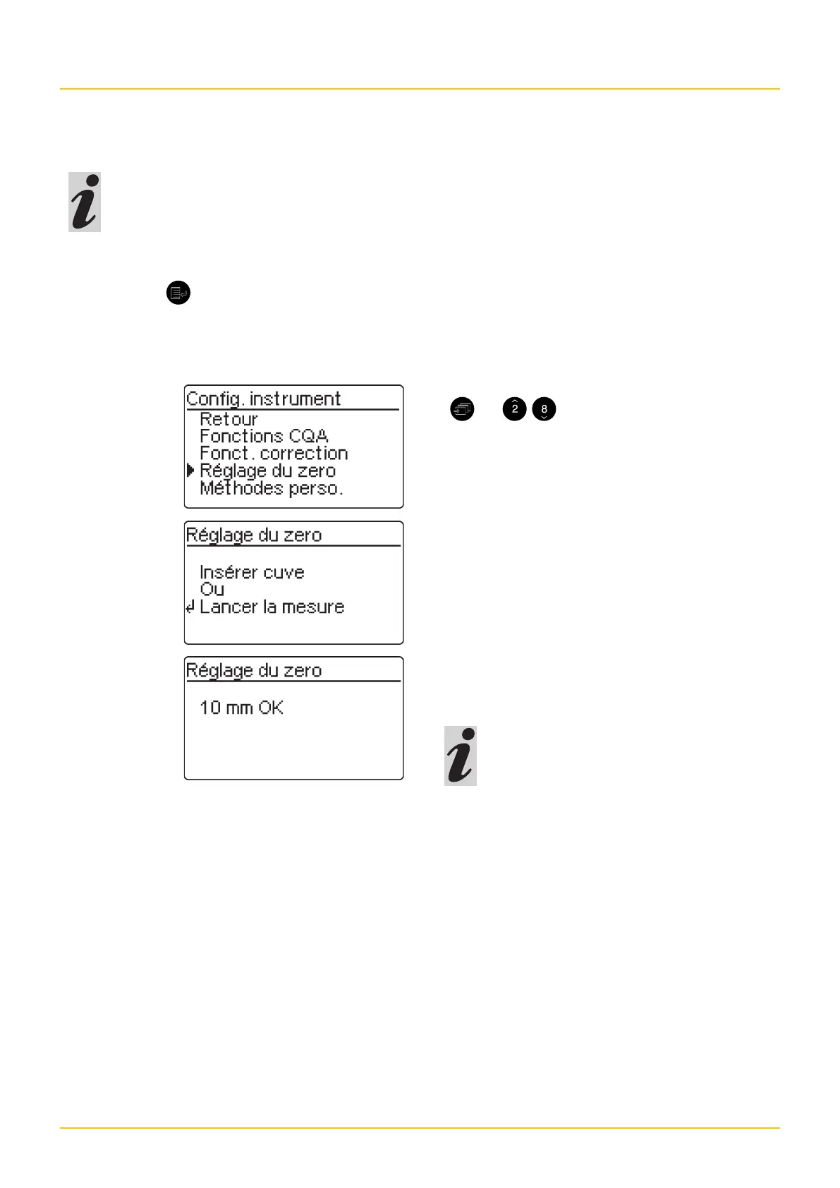 – Appeler le sous-menu Réglage du zero avec