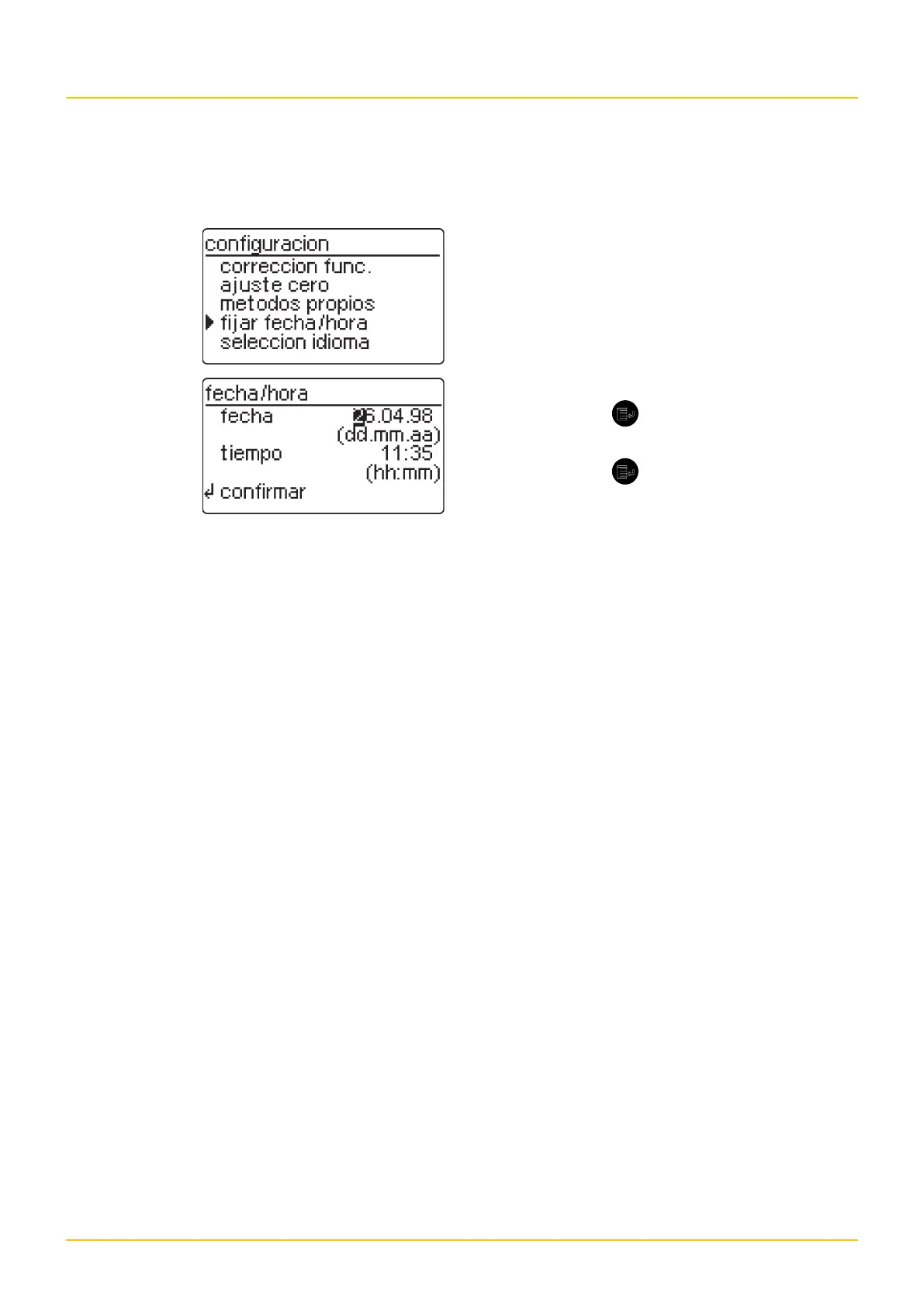 – Entrar la fecha a través del bloque de cifras