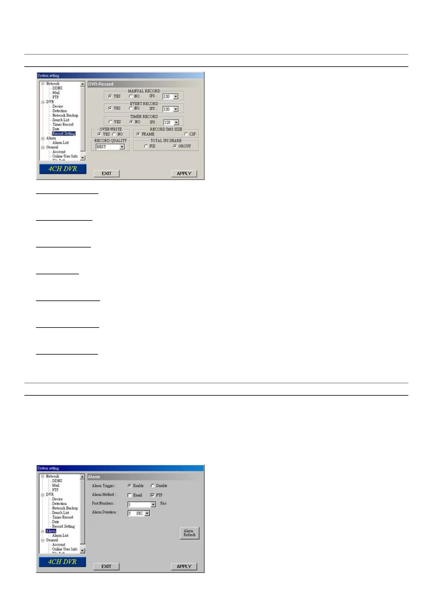 In “DVR” Æ “Record Setting”, you can set DVR record settings.