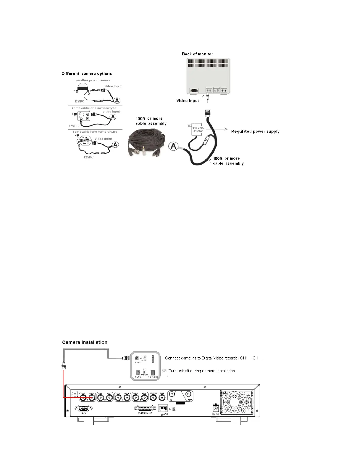 using a new power adapter and cable for each camera. This will test each component of your video system prior to