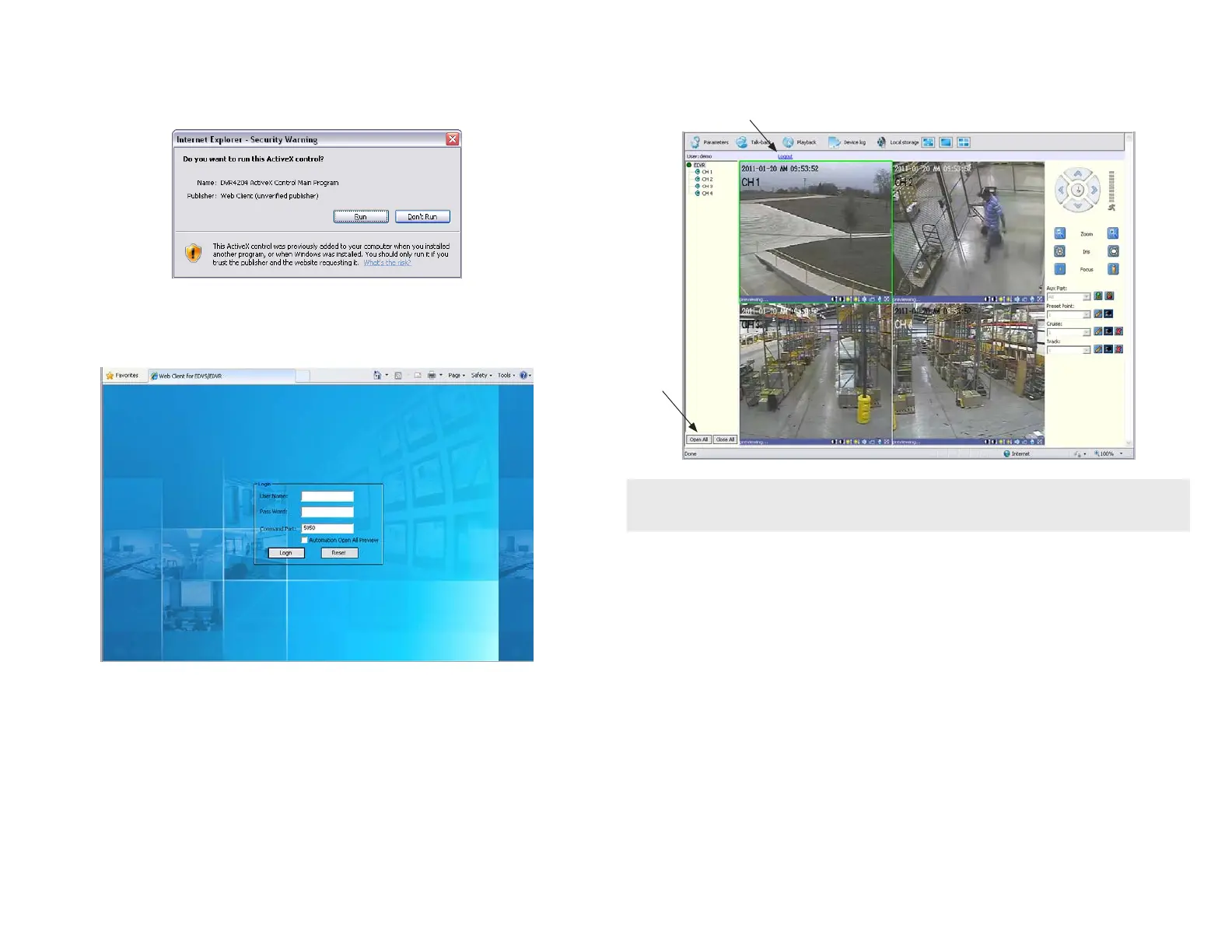 11. After login, the DVR web display will appear. To see images from the cameras connected to your DVR, click