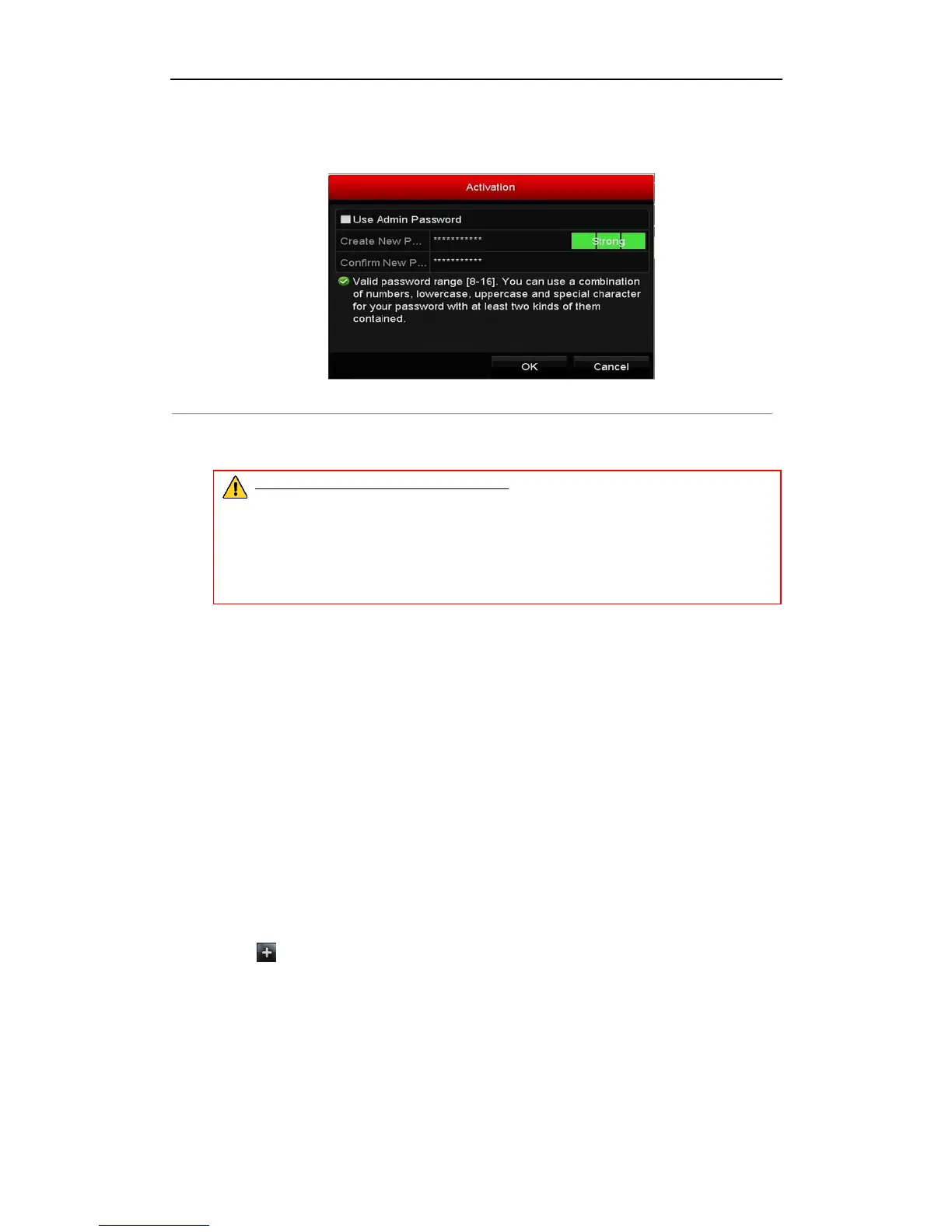 Create New Password: If the admin password is not used, you must create the new password for the camera