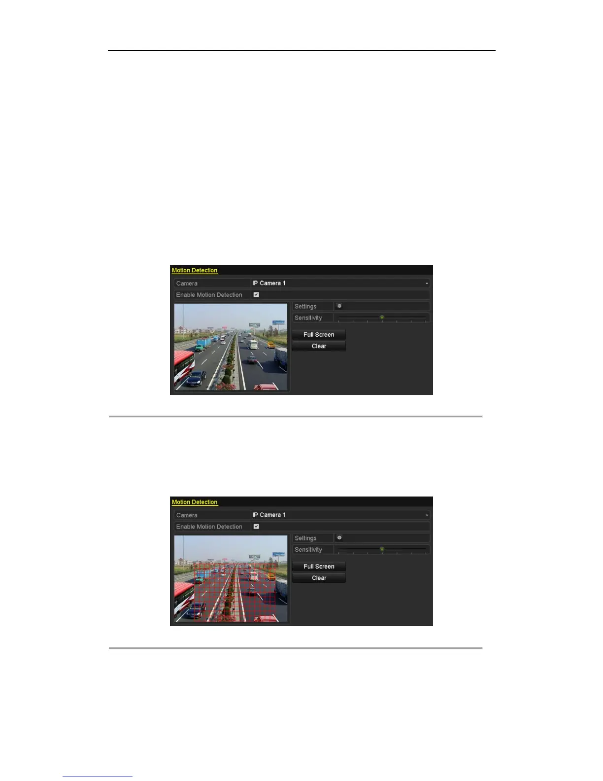 area shot by the camera, click Full Screen. To clear the motion detection area, click Clear.