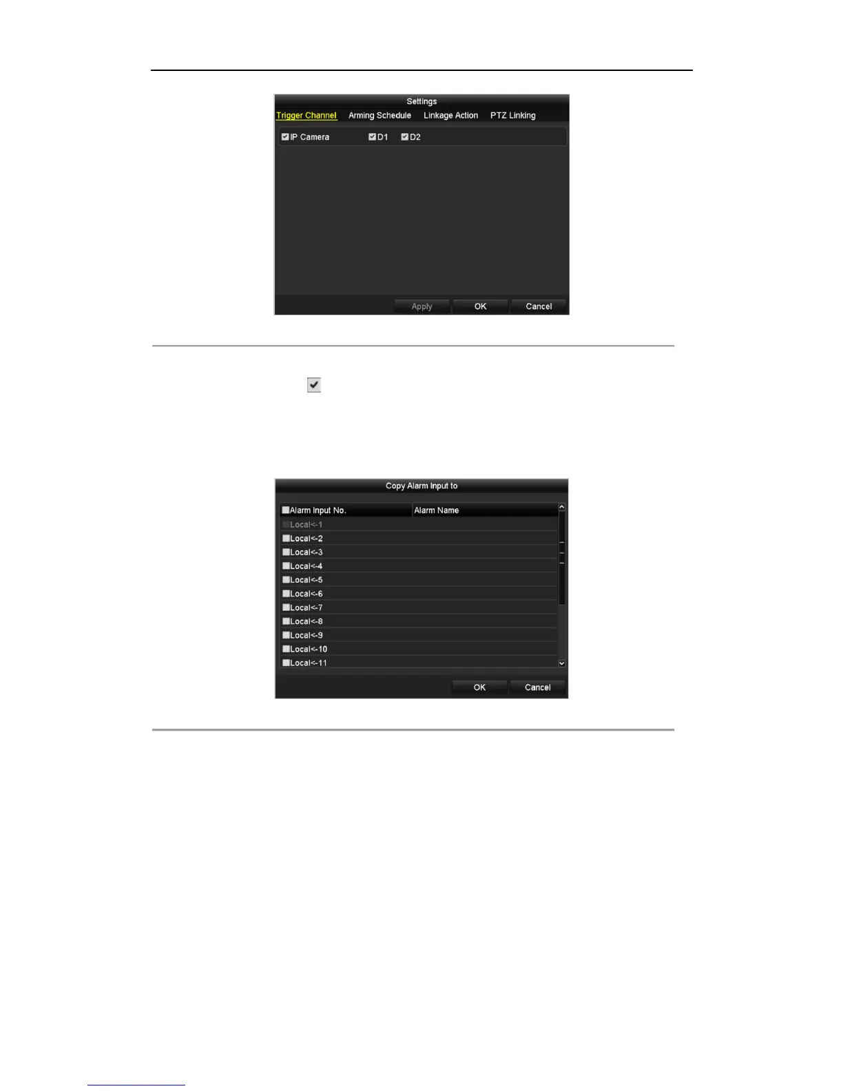 5) Choose the alarm triggered recording channel.