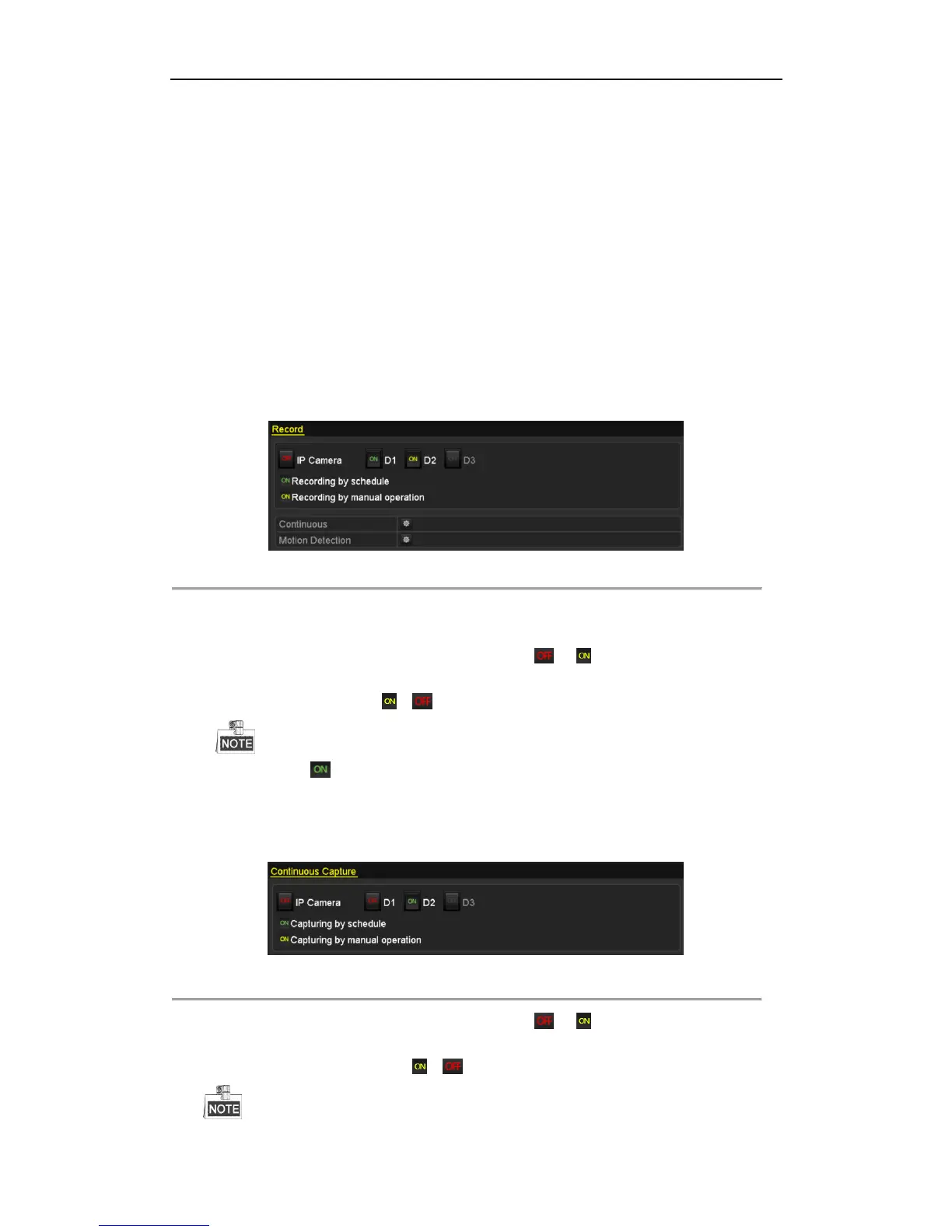 Follow the steps to set parameters for the manual recording and continuous capture. Using manual recording and