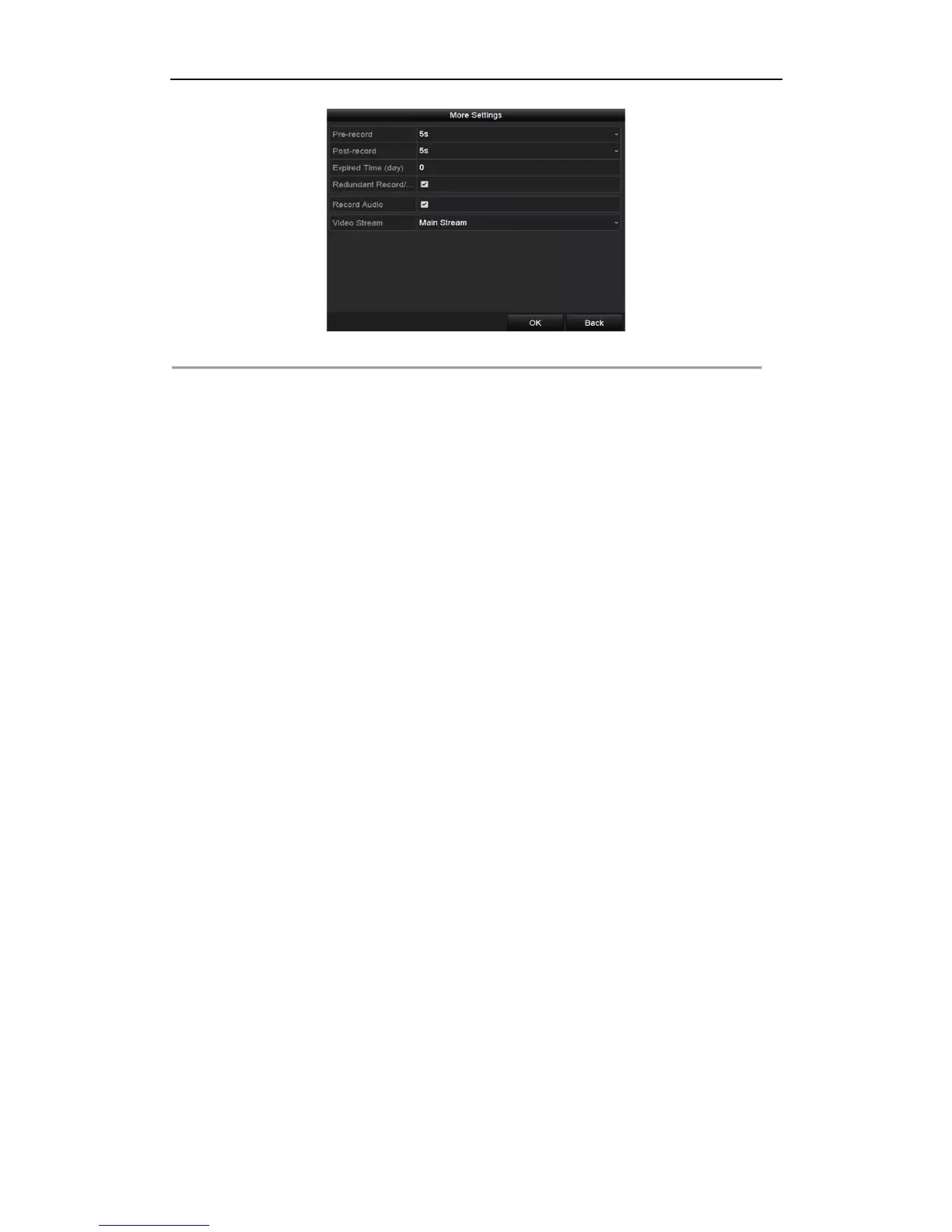 5) Click OK to save settings and back to the upper level menu.