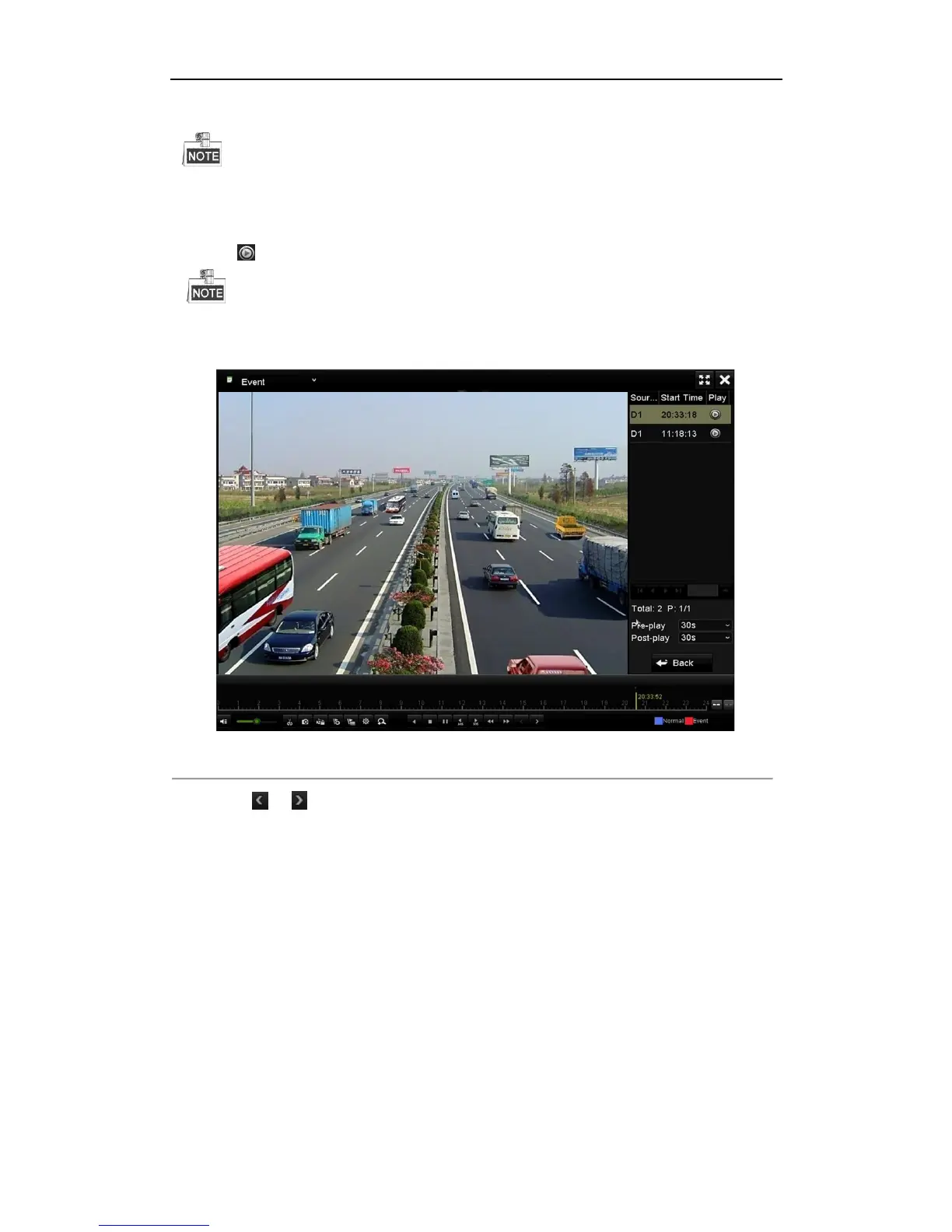 You can click or button to select the previous or next event. Please refer to Table 6.1 for the description