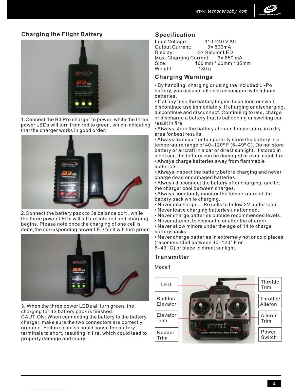 Super-E Saturn - Flight Battery Charging; Charging Warnings and Precautions