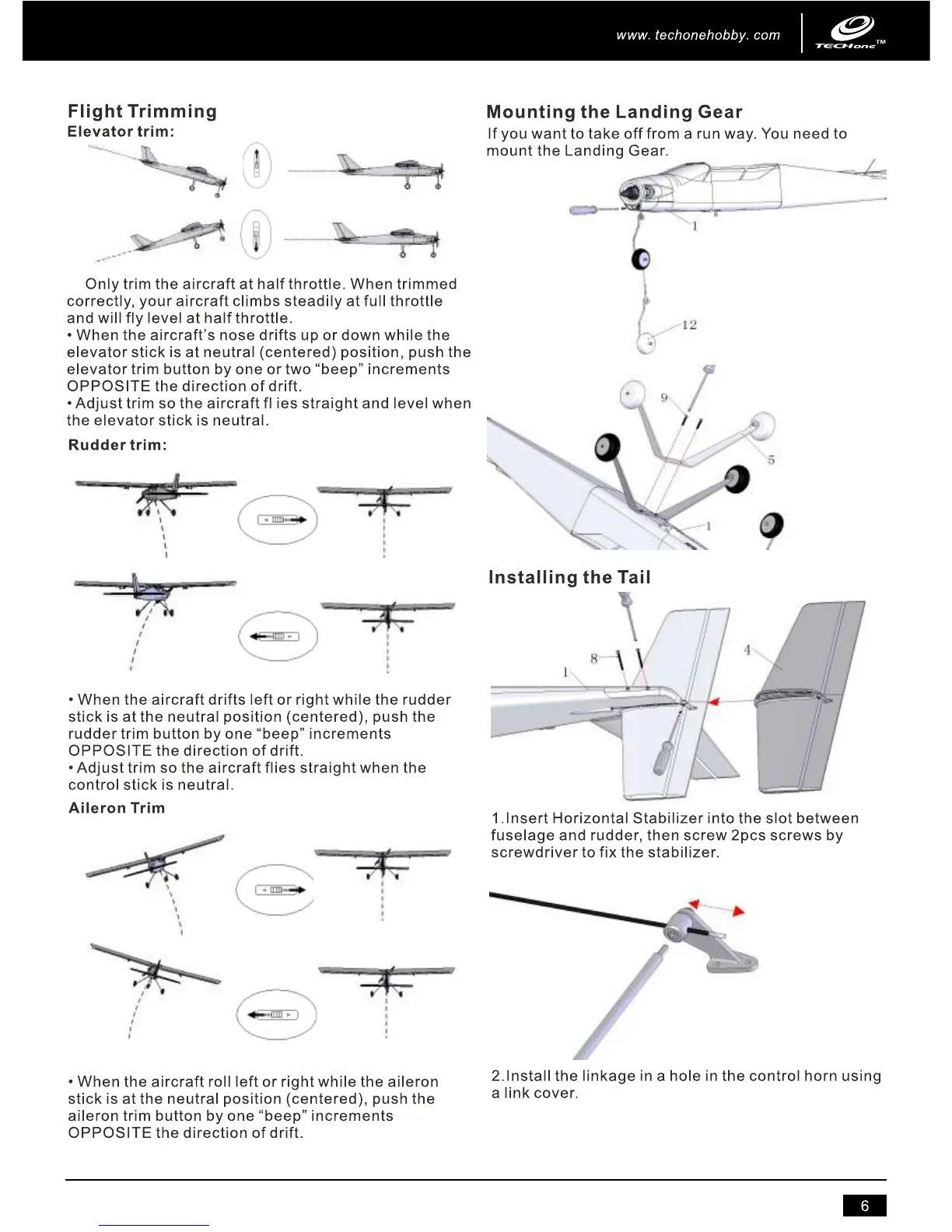 Super-E Saturn - Flight Trimming Procedures; Landing Gear and Tail Assembly; Mounting the Landing Gear; Installing the Tail Assembly