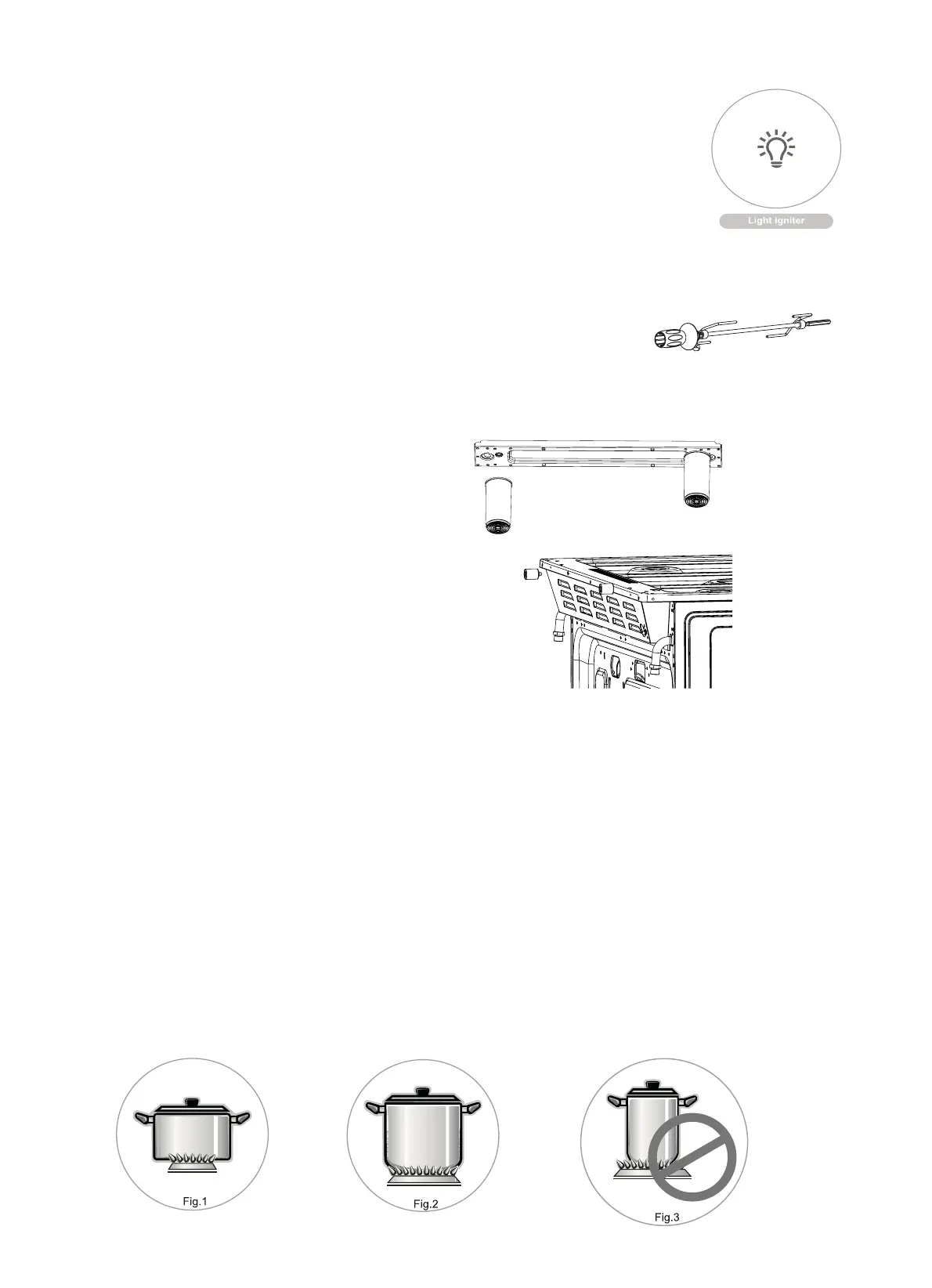 size(fig.1and 2), preventing the flame to burn in the open(fig.3).It is advisable to reduce the flame as soon as the liquid