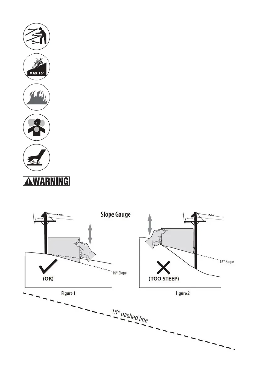 Use extra caution on slopes. Do not trim on slopes greater than 15°.