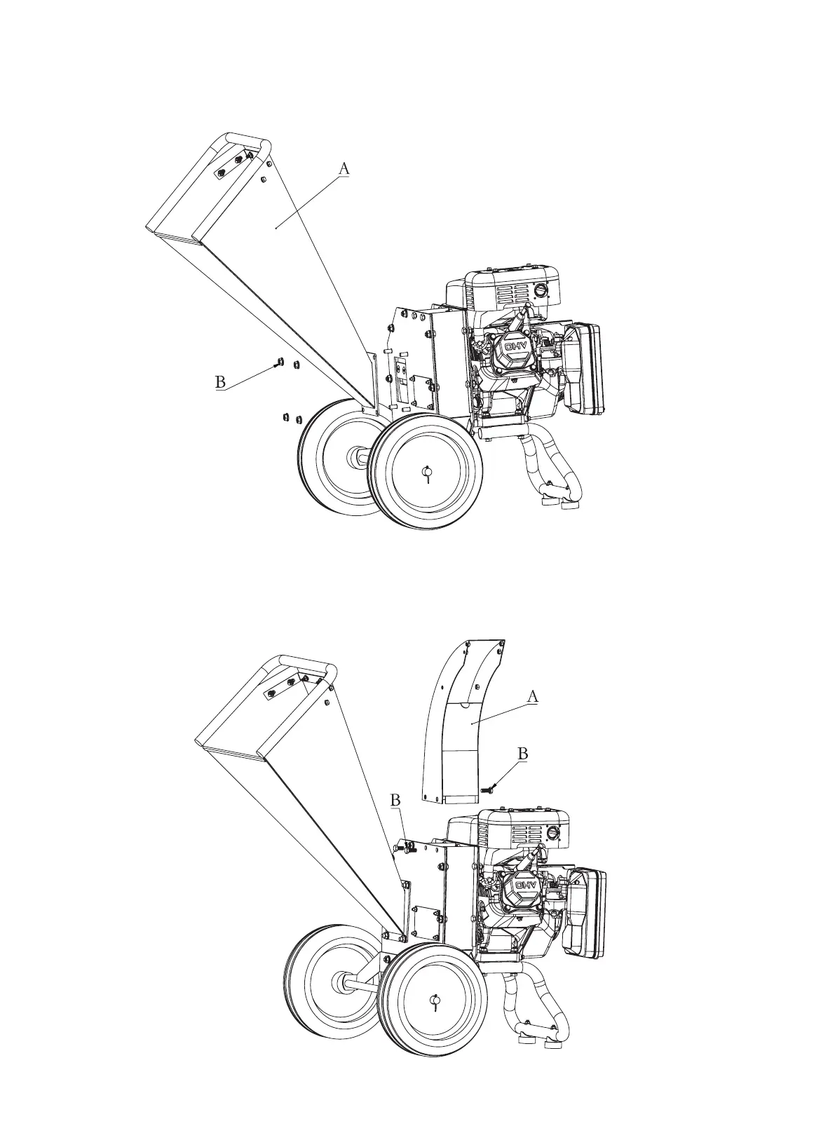Fix the discharge chute with three M8*16 bolts (B) on the housing. (see Figure 4)