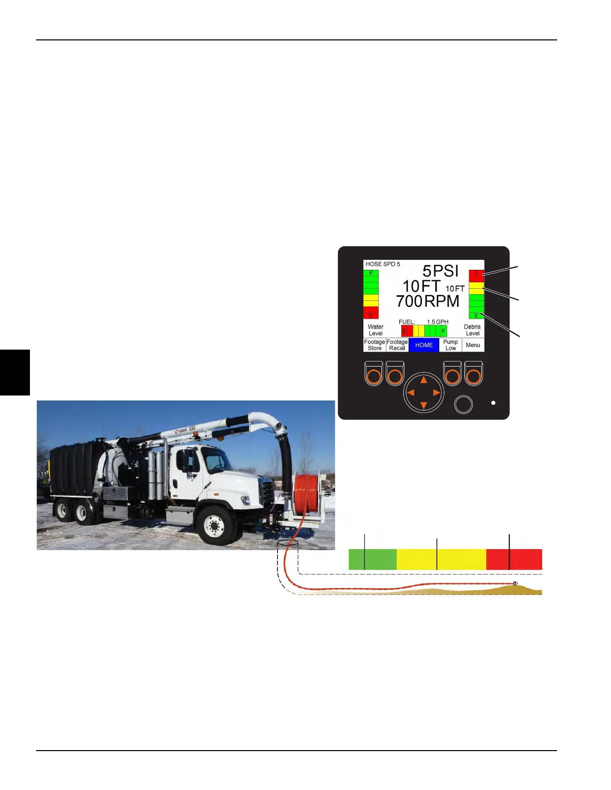 See the example below for debris level vs paid out jetting