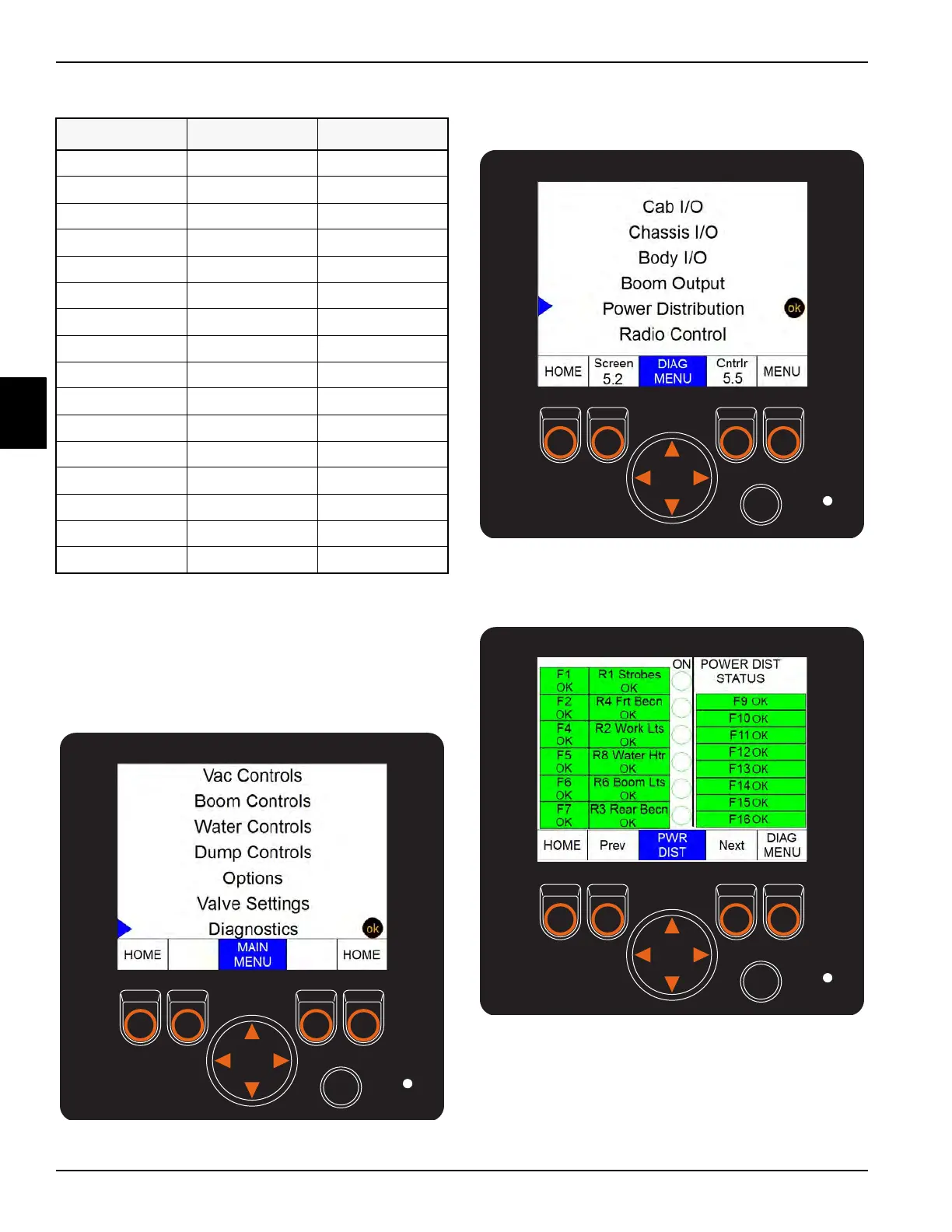 The status of the control panel fuses and relays can be