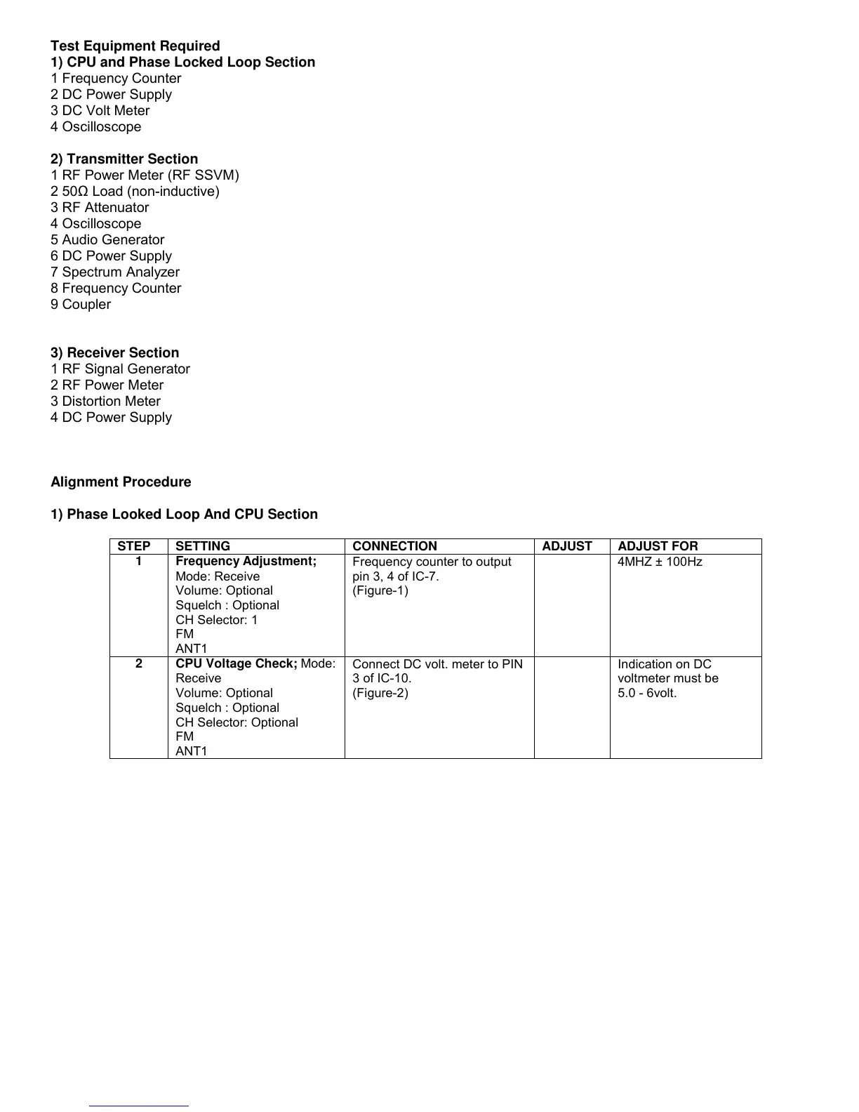 STEP SETTING CONNECTION ADJUST ADJUST FOR