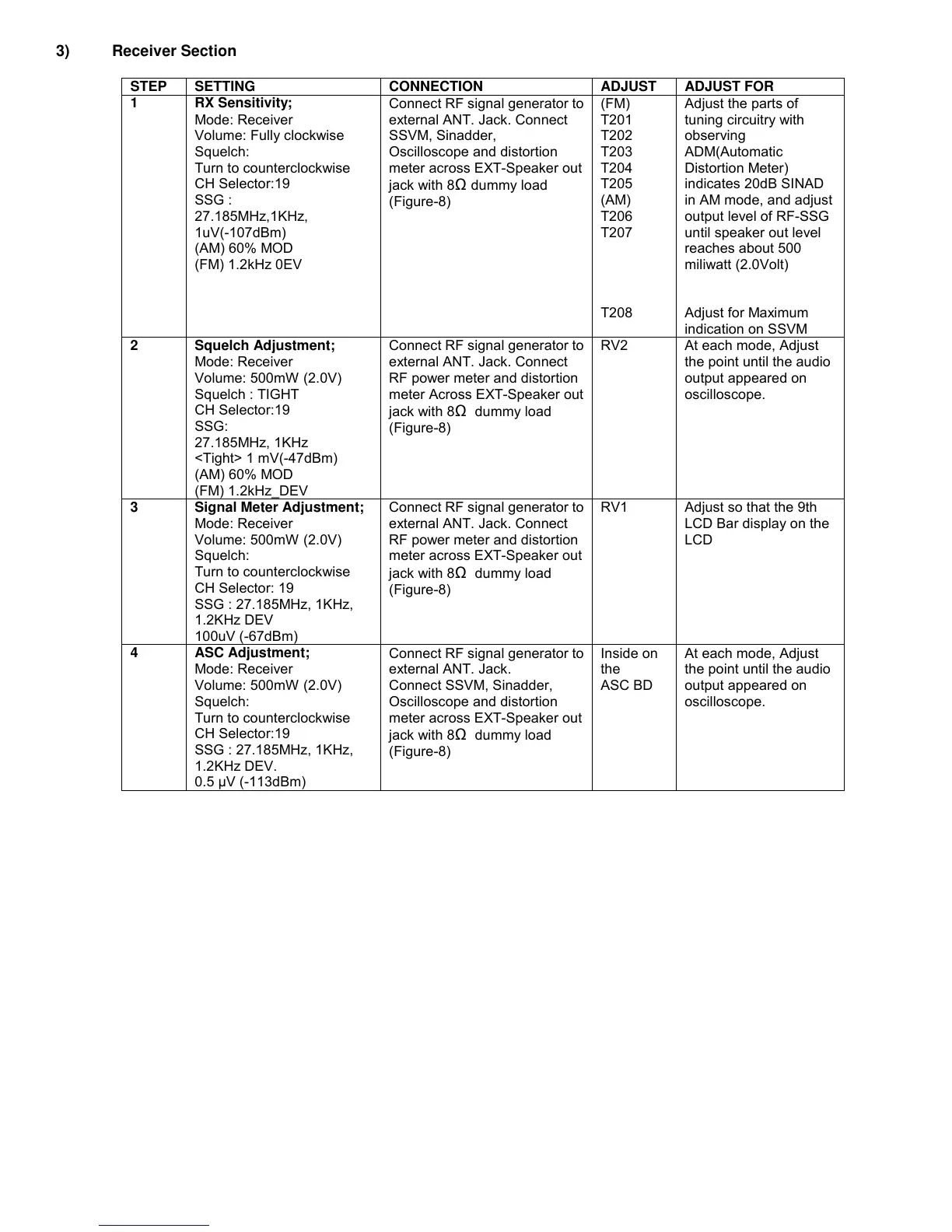 STEP SETTING CONNECTION ADJUST ADJUST FOR
