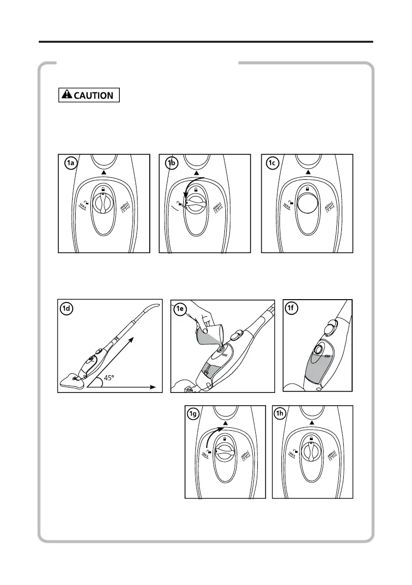 Hold the mop at a 45° angle as illustrated in Fig. 1d and add water