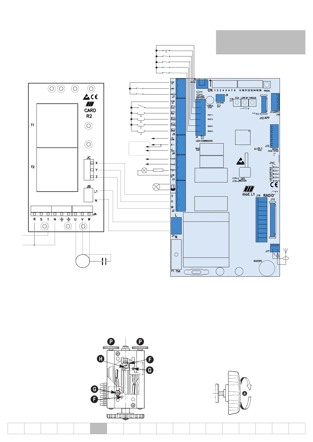 1° Anschließen von Motor und Endschalter (werkseitig ausgeführt)