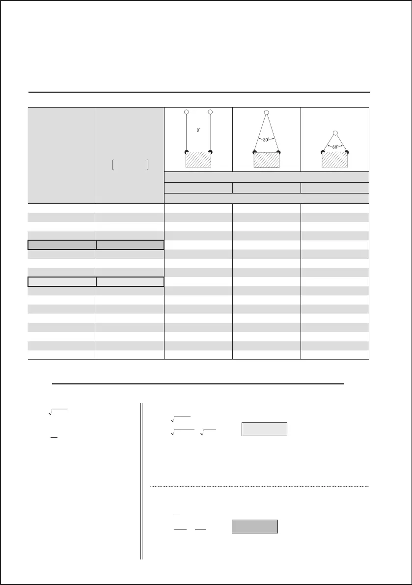 Correlationtablebetweentheliftingangleandtheapplicableloadforwirerope