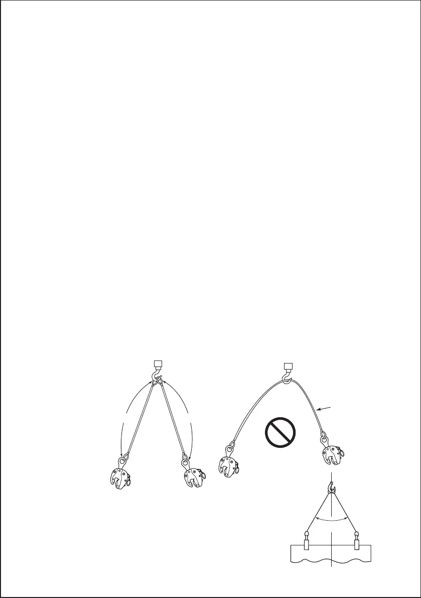When lifting at 2 points, be sure to use two wire ropes, and make them