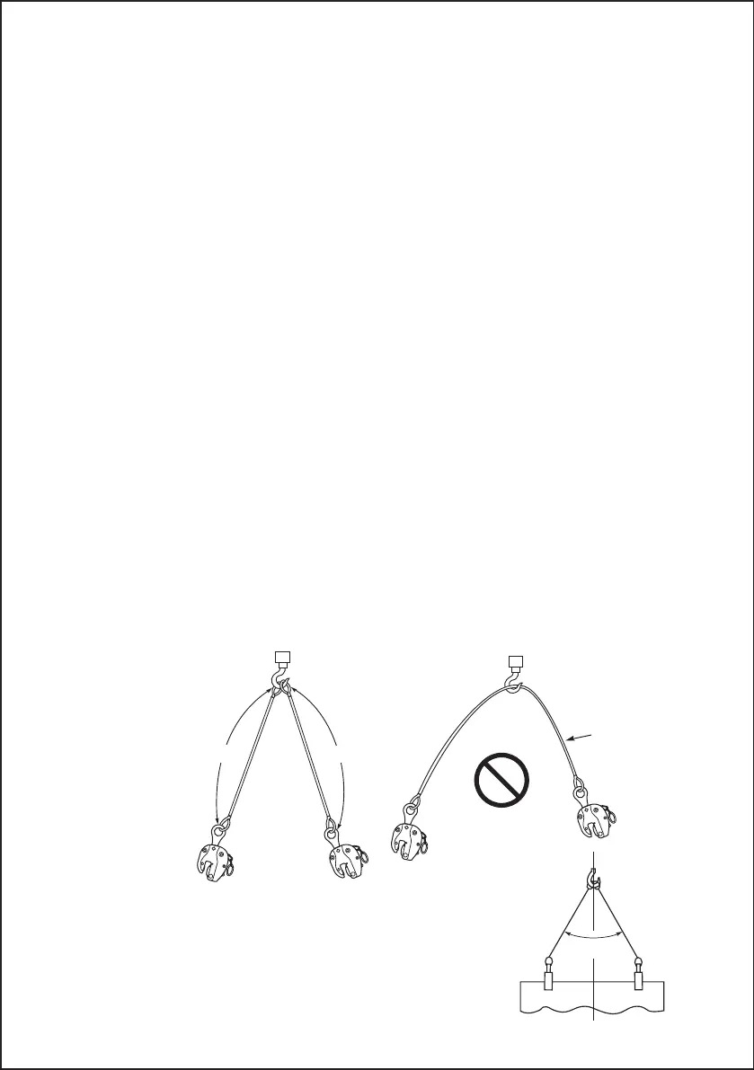 When lifting at 2 points, be sure to use two wire ropes, and make them