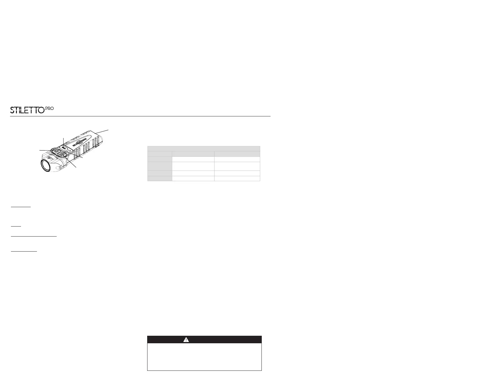 output buttons. The STILETTO must be off to change modes. The PRIMARY and TACTICAL