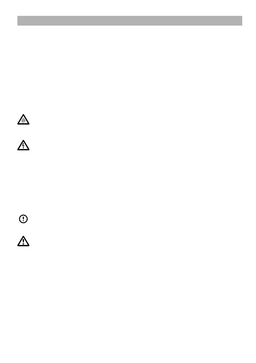• Seien Sie vorsichtig mit der Kombination von Wasser und Strom. Nicht mit nassen Händen bedienen. Trocknen Sie